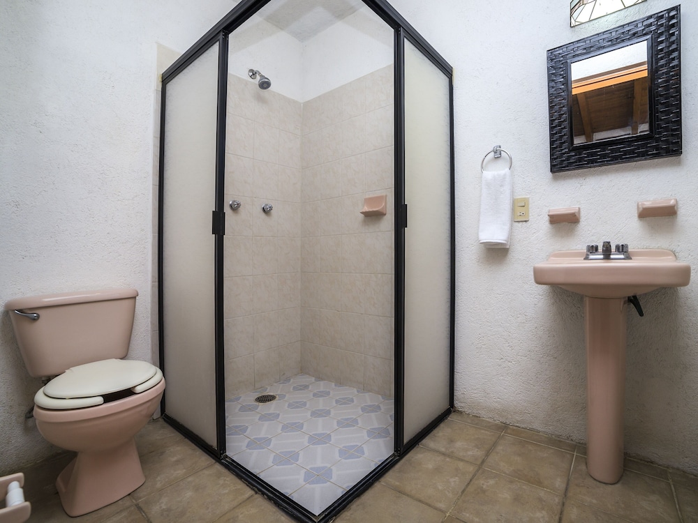 Habitación sencilla pero limpia. Vale la pena el precio del cuarto con cama Queen 👑 si vas en pareja, solo por la vista y la alberca (que está limpia), pero el cuarto en sí es pequeño. Además tienen una linda capillita. Son muy atentos los de servicio y todo muy cuidado.