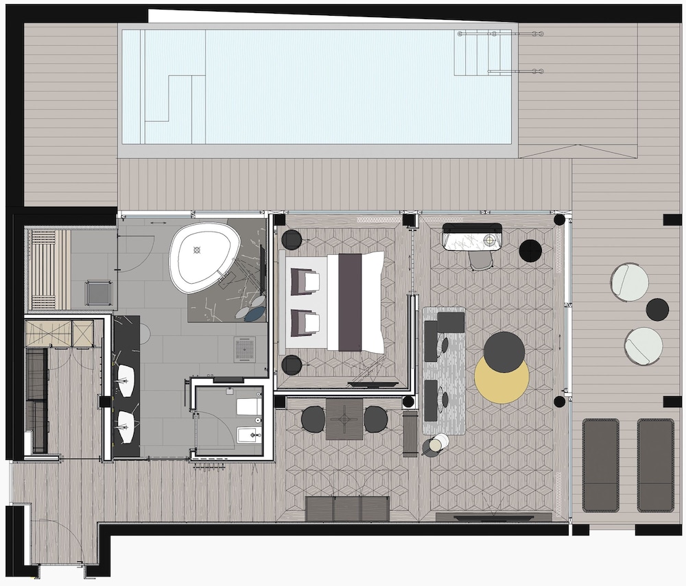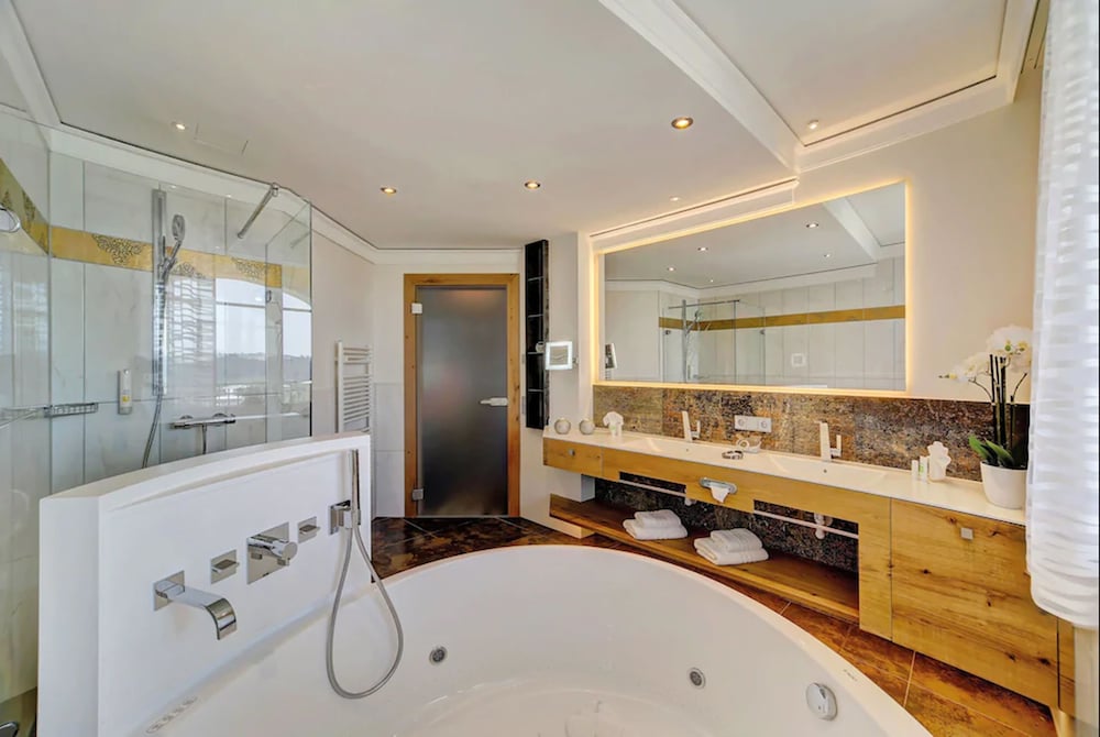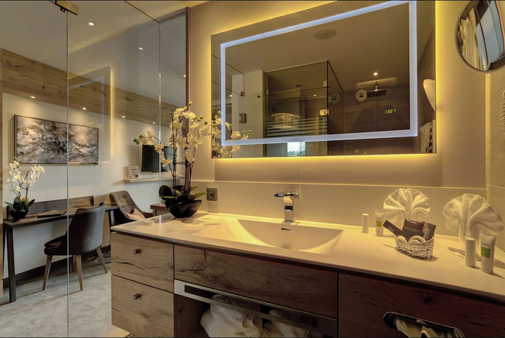Our stay here was perfect. It takes a while to get to the hotel, which is situated in a small town. The attention to detail is remarkable. The indoor pool area is extremely beautiful and continues to the outside area. The water is warm, probably above 30 degrees Celsius, but there is a small mini lake with colder water which is really nice. The food is fantastic. 5 course menus in the evening with minimum waiting for each course. Breakfast and lunch both perfect. The gym area is huge. Our room, 308, was incredible. You cannot possibly be disappointed if you stay at this hotel. A few suggestions though: Dinner time is until 8. I would suggest extending it until 9 PM. We felt we had to leave the pool area earlier than we would have liked in order to be ready for dinner. Also, there is a gaming room with pool, darts and table tennis where a lot of people like to go after dinner. Although the gym is huge, this gaming room is very small. I would suggest to extend the gaming facilities in the gym area.