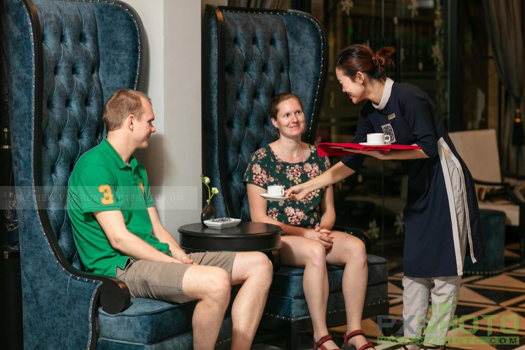 The room was ok. Didn't look like a room you'd see In a 4 star hotel (looked more 2/3stars). The room didn't have a view outside instead, a corner was curtained off and behind it was what looked like a shaft. The room doesn't have enough plug sockets. If you use a travel adapter of a certain size, you lose access to one socket. I also don't like hotels that give mini shampoo/shower gel bottles and tiny bars of soap. Should just have large containers of them near the sink and shower. Breakfast had very limited vegetarian options and flies were seen when eating. The staff were extremely good and polite. The woman that works there too (might be the manager) would greet everyone and ask about their day. The place is located in an alleyway but is very close to all the action in central Hanoi.