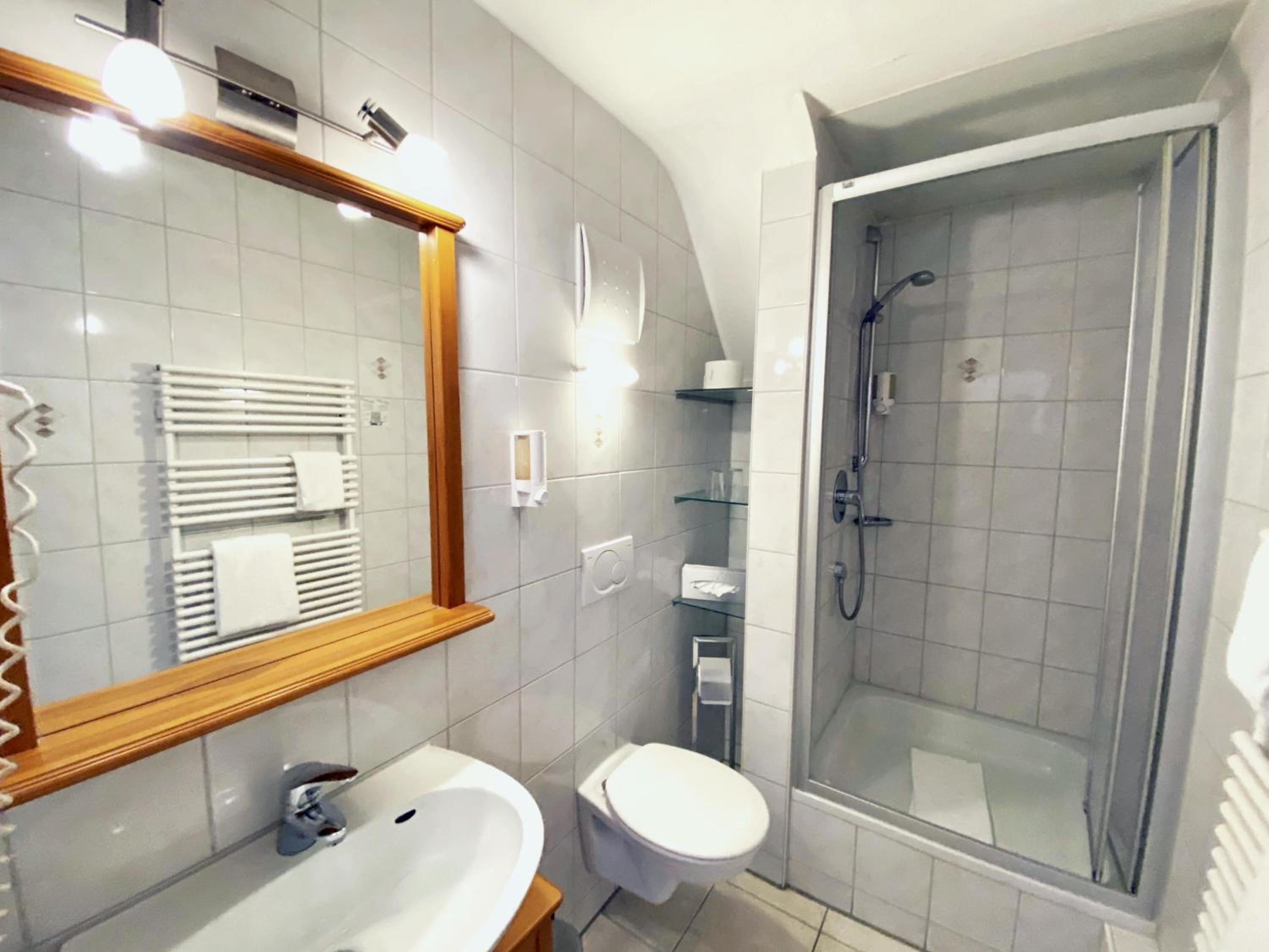 Sehr reichaltiges Frühstück, für jeden Geschmack was dabei. Das Zimmer mit Aussicht nach vorne war sehr schön, etwas klein, aber hat alles gehabt, was man braucht. Das Bad war sehr modern, die Dusche wunderbar. Alles super sauber. Ich habe vom Hotel aus ein kostenloses Update bekommen auf ein Superior Zimmer, einfach, weil es frei war. Das fand ich sehr sympathisch. Ich komme gerne wieder nächstes Mal, wenn ich Verwandtenbesuch in Vaihingn mache.
