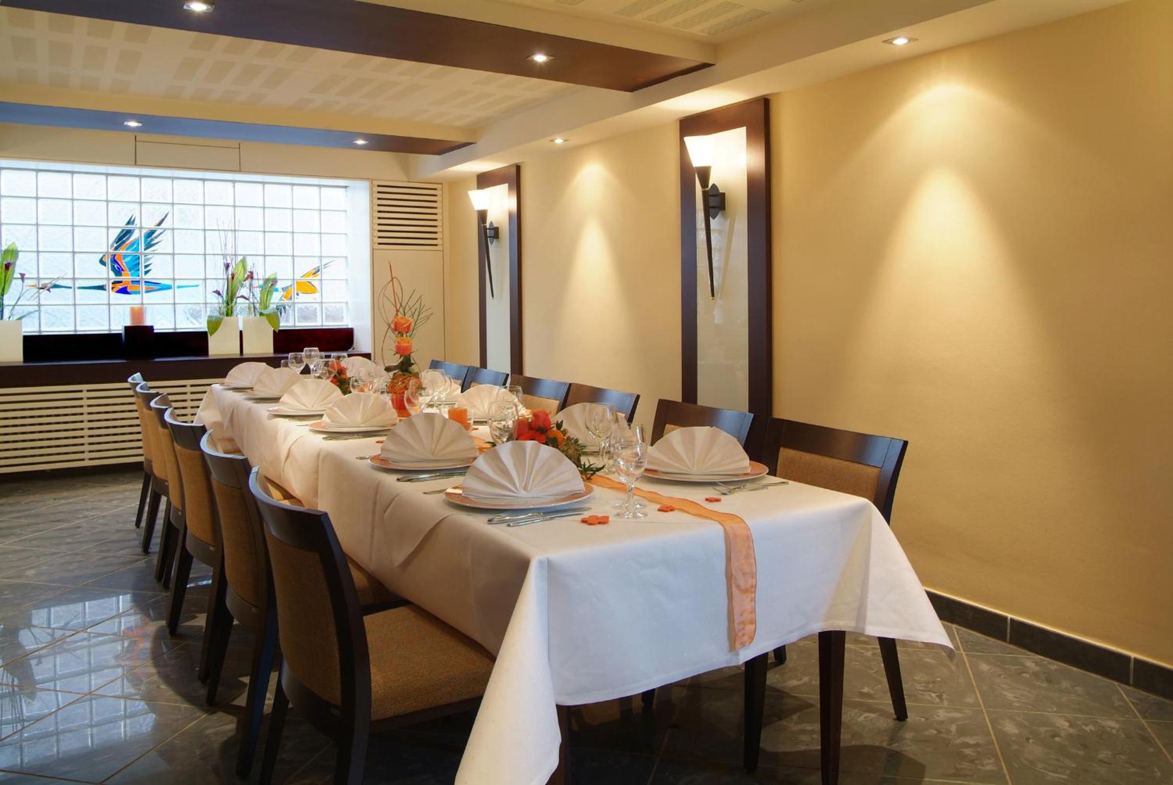 Indulge in a culinary journey at our stylish restaurant, offering a delectable array of German and international dishes. After a day of exploration, unwind in our sauna and hot tub or mingle in the charming chimney room.