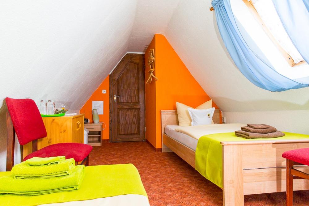 Serene Surroundings: Nestled in Nohra, just a short distance from bustling Erfurt, Kräuterhotel Garni Zur Klostergrotte offers a peaceful escape with lush garden views and a charming children's playground.