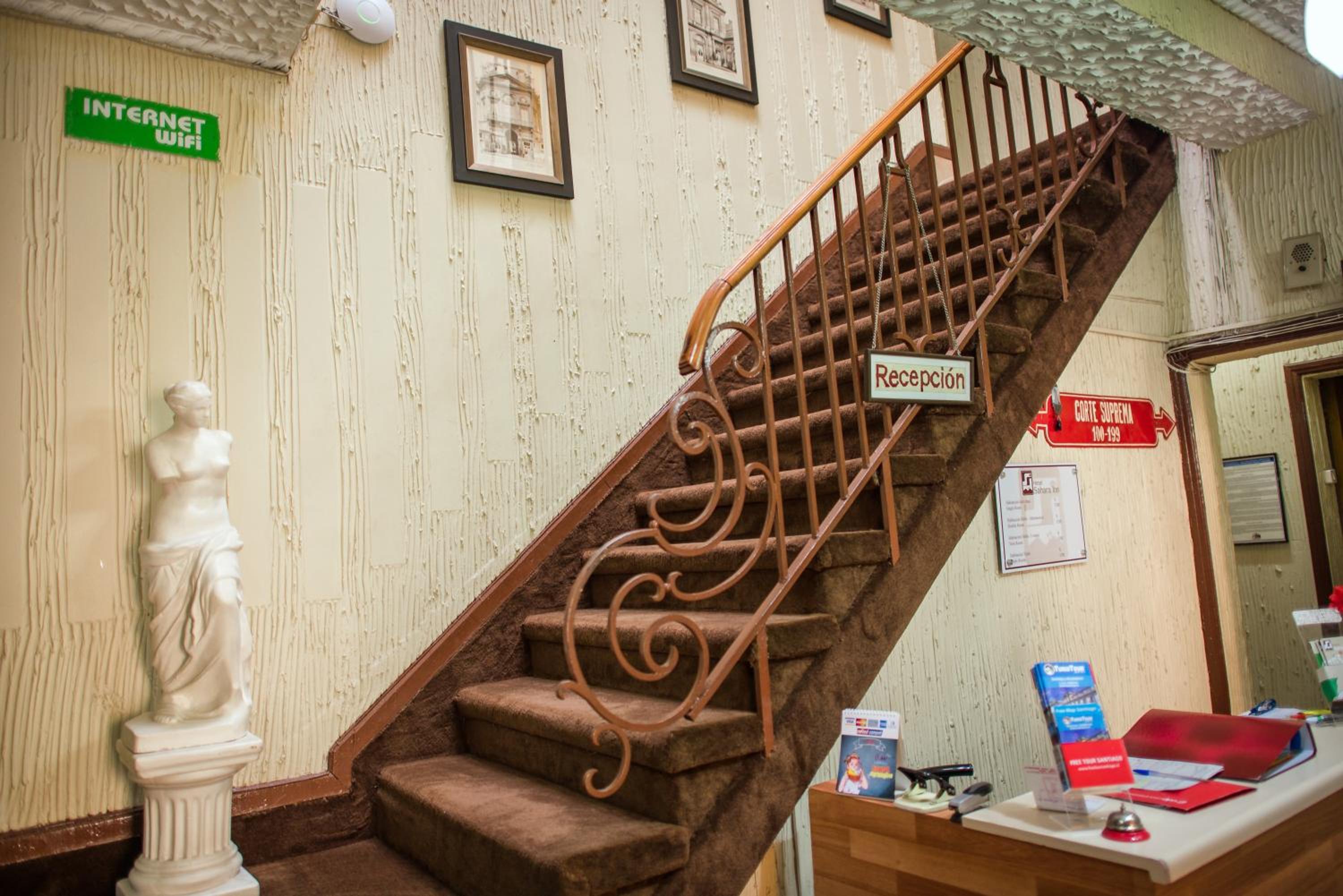 Hotel Sahara Inn, conveniently located near La Moneda metro station, offers elegantly designed rooms with private bathrooms and TVs, ensuring a comfortable stay for all guests.