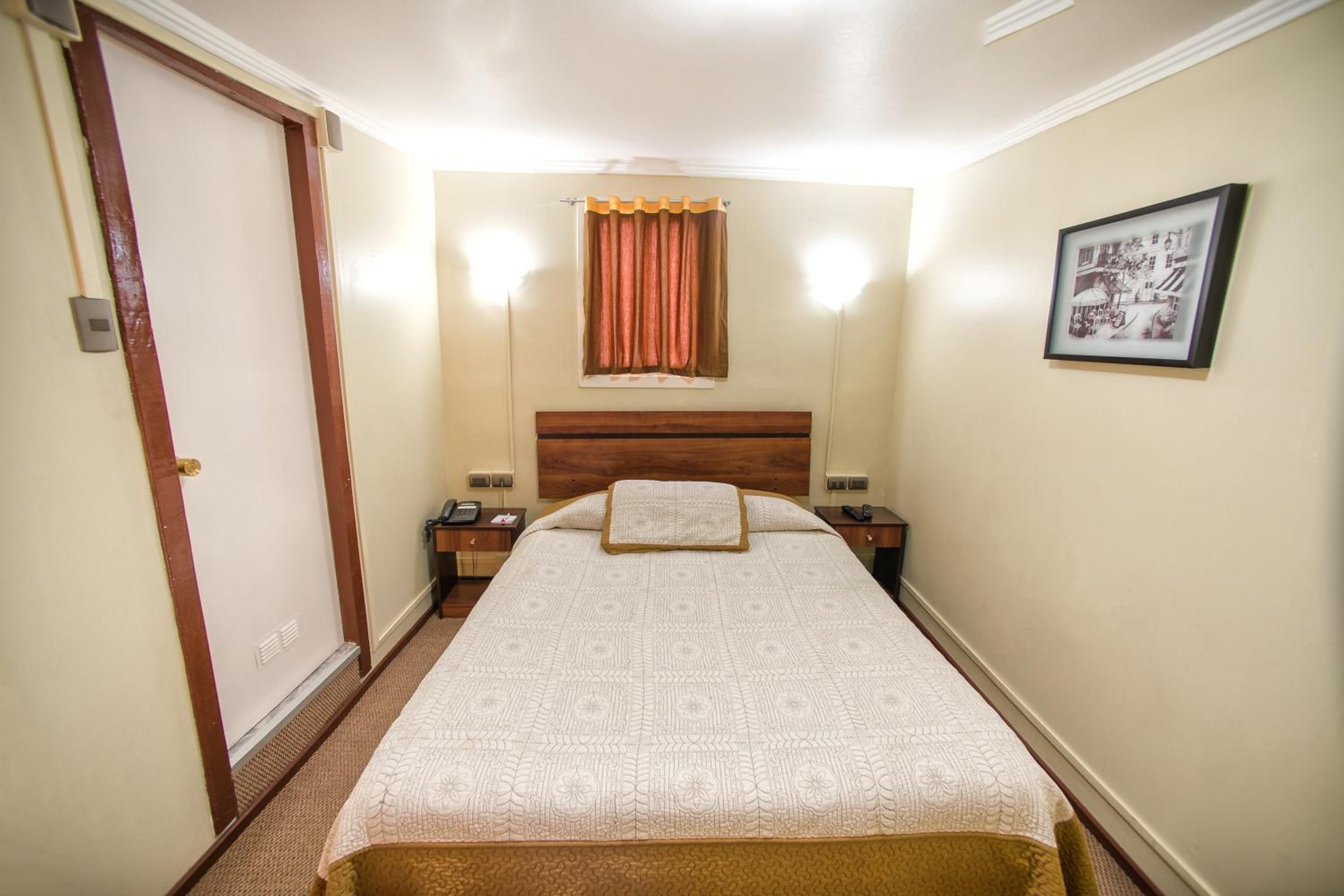 Excelente experiencia, es un hotel de 3 estrellas, su personal muy amable, todo limpio, la habitación cuenta con ventilador. En la mañana hasta las 10 un muy buen desayuno, te dan un sándwich con jamón, envuelto en una bolsita individual, con yogurt, pero aparte en el comedor te sirves lo que quieras, café, té, leche, jugos, avena, cereales a tu gusto, miel, mermelada, quesillo,fruta fresca, postre, etc... Súper completo. Ubicado en pleno centro, a pocas cuadras de la torre Entel. Me encantó, volvería sin pensarlo.