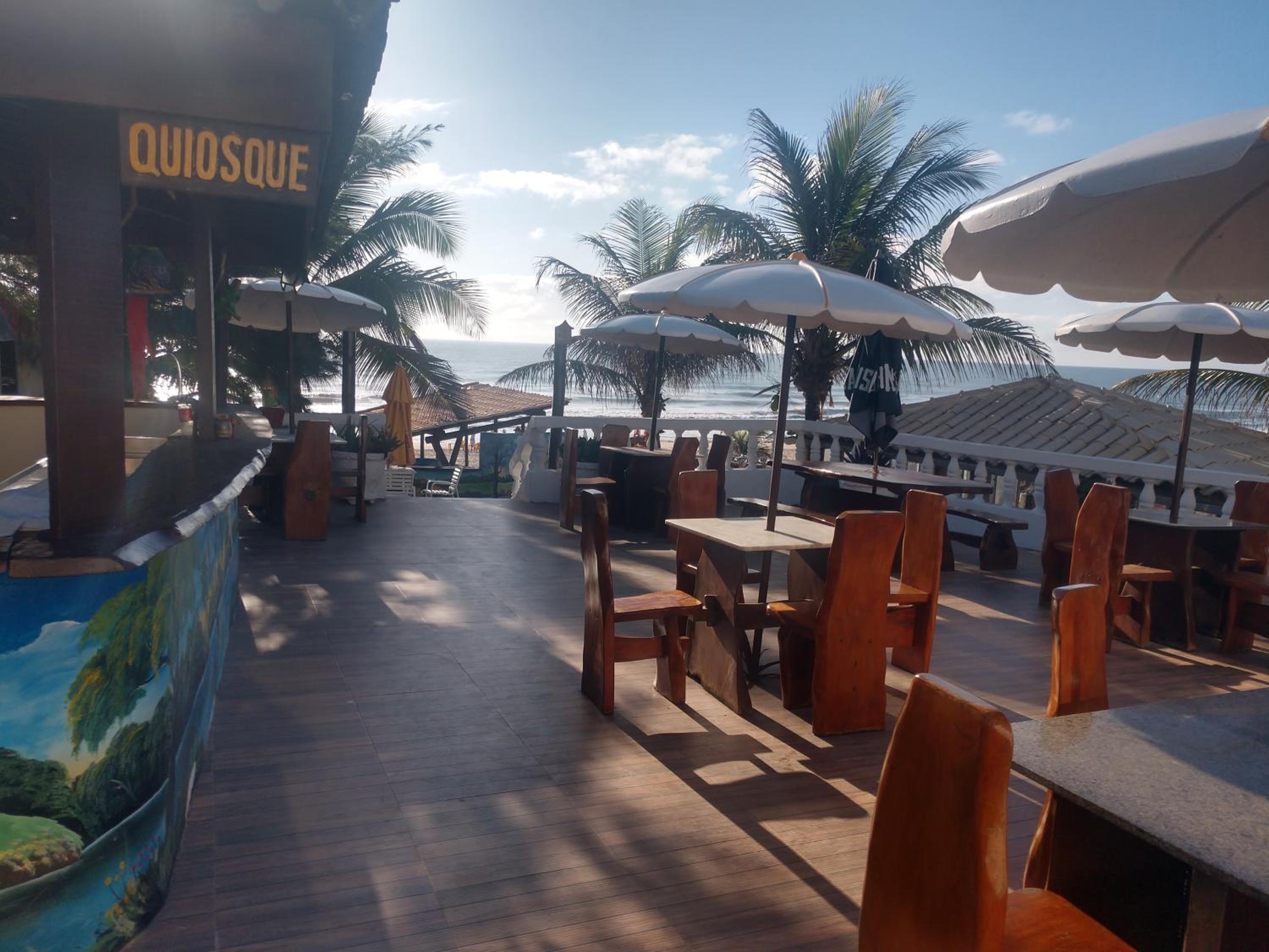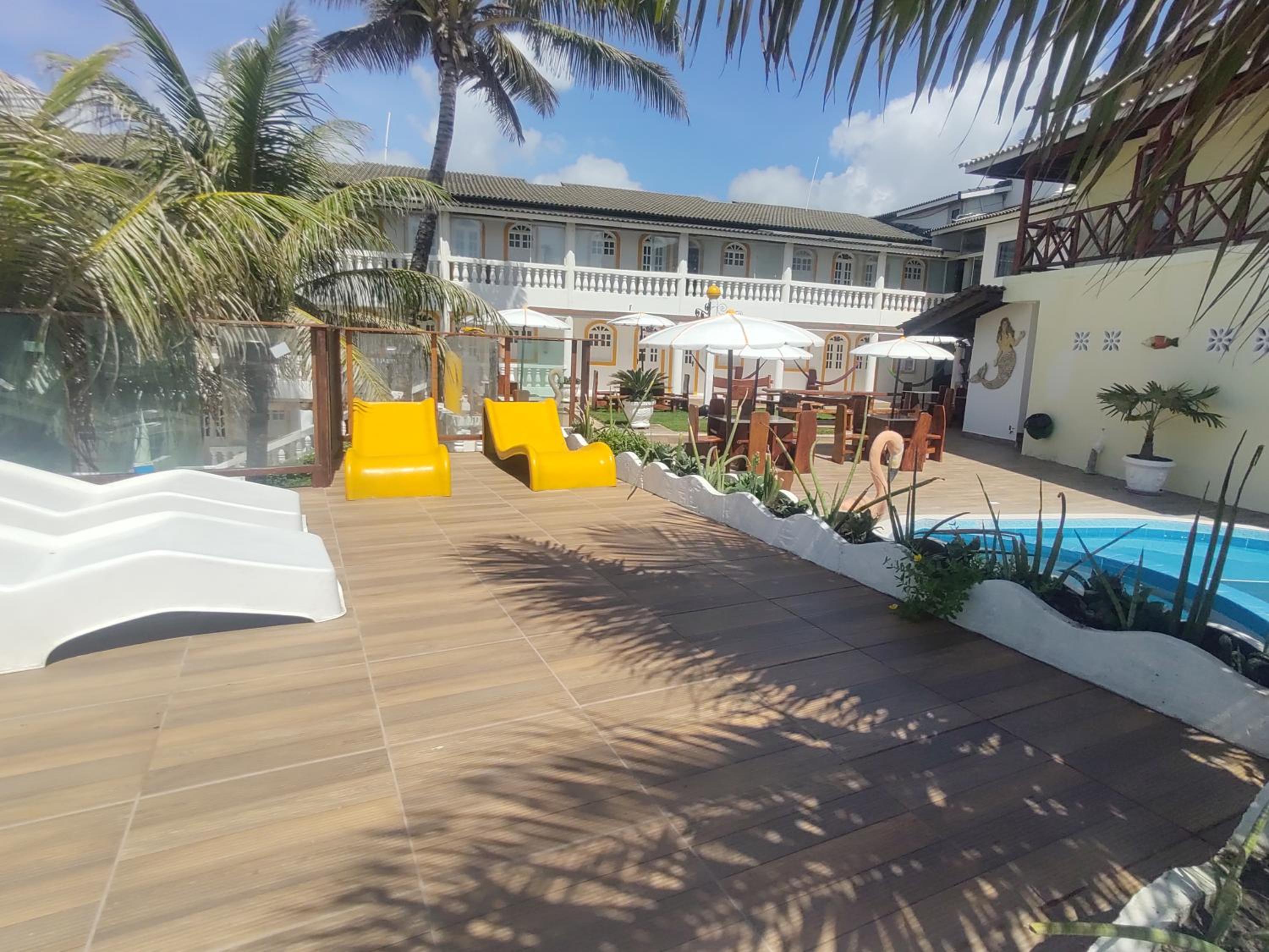 Ao contrário do informado no booking, NÃO HÁ RESTAURANTE FUNCIONANDO, NEM BAR DE PISCINA, ATÉ O ACESSO A PRAIA ESTAVA TRANCADO. Sinuca imprestável, tacos seria melhor jogar com a mão. De madrugada (02:00 da manhã), chegou uma turma, ocupou 3 quartos, colocaram som, gritavam no corredor de um quarto para outro e NINGUÉM DO HOTEL TOMOU NENHUMA PROVIDÊNCIA, MINHA ESPOSA, CORAJOSAMENTE (porque com gente desse tipo você nunca sabe o que pode acontecer), foi ao corredor e gritou (falar não adiantava) que nós queríamos dormir! LAMENTÁVEL!. NO DIA SEGUINTE, ÓBVIO, RECLAMAMOS: RESPOSTA:" É, eles estão fazendo um trabalho na cidade, MAS NÃO SE PREOCUPEM, DEVEM IR EMBORA AMANHÃ! Nos trocaram de quarto, para o andar de baixo, onde, sem a proteção de chuva e vento no corredor (proteção que existe no andar de cima), não deu para usar nem a varanda, onde a rede toda molhada de água (pois choveu) ficou imprestável, e O CORREDOR MUITO ESCORREGADIO E PERIGOSO. No café da manhã não faz tapioca, nem omelete, nem ovo, nem nada: o que tem taí e pronto!
