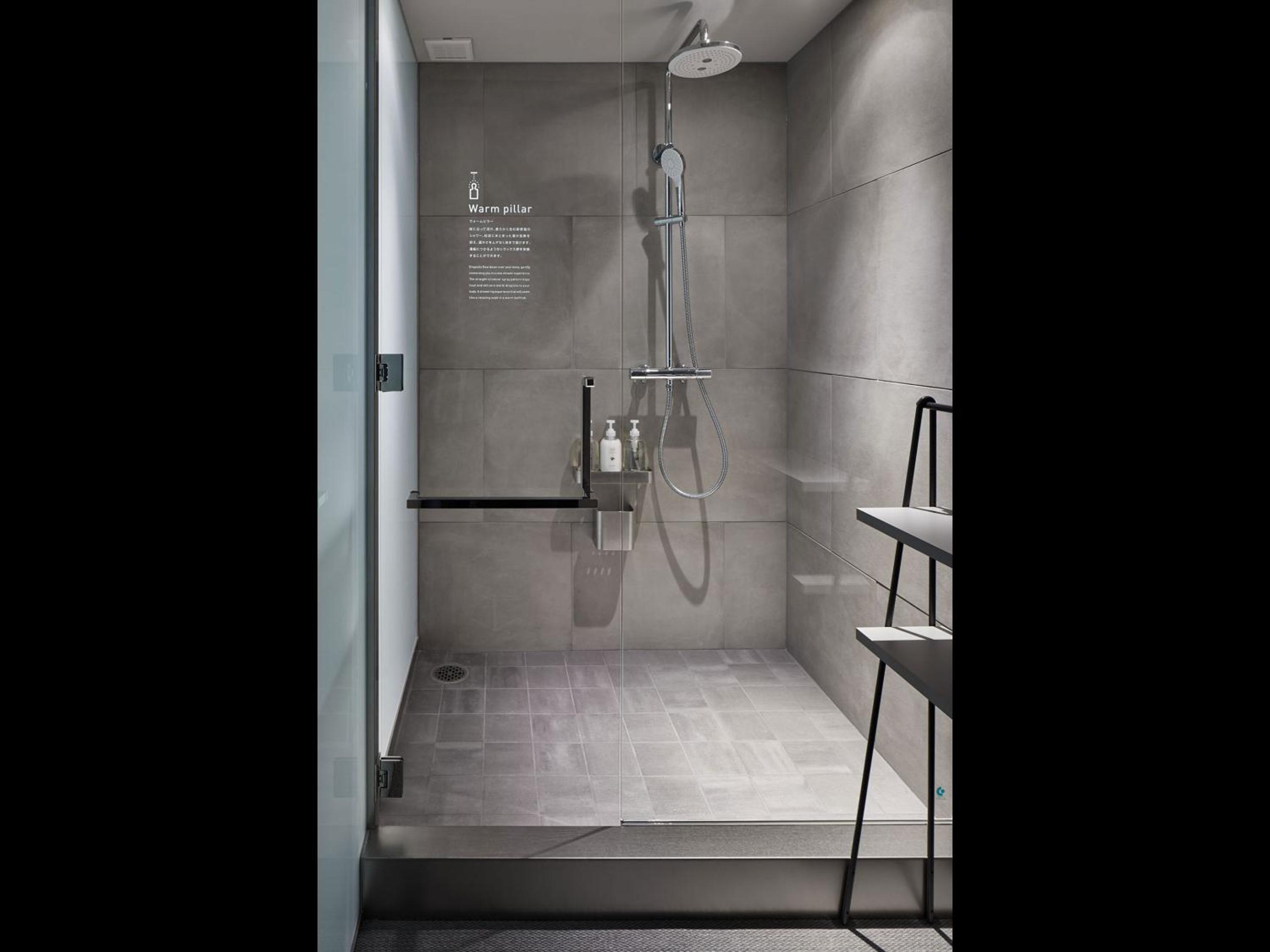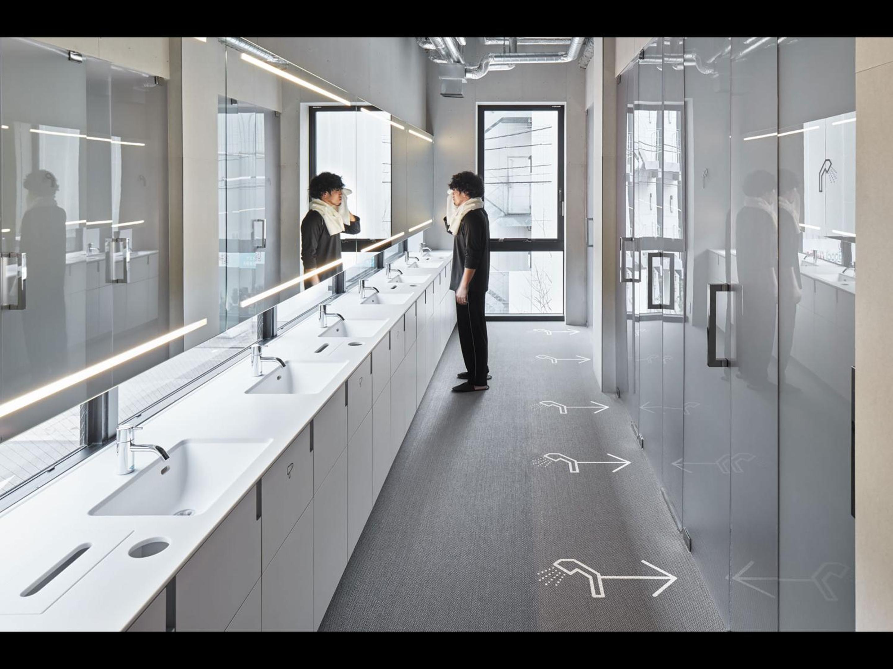 第一次看到膠囊旅館的衛浴間,有乾濕分離的空間設計。