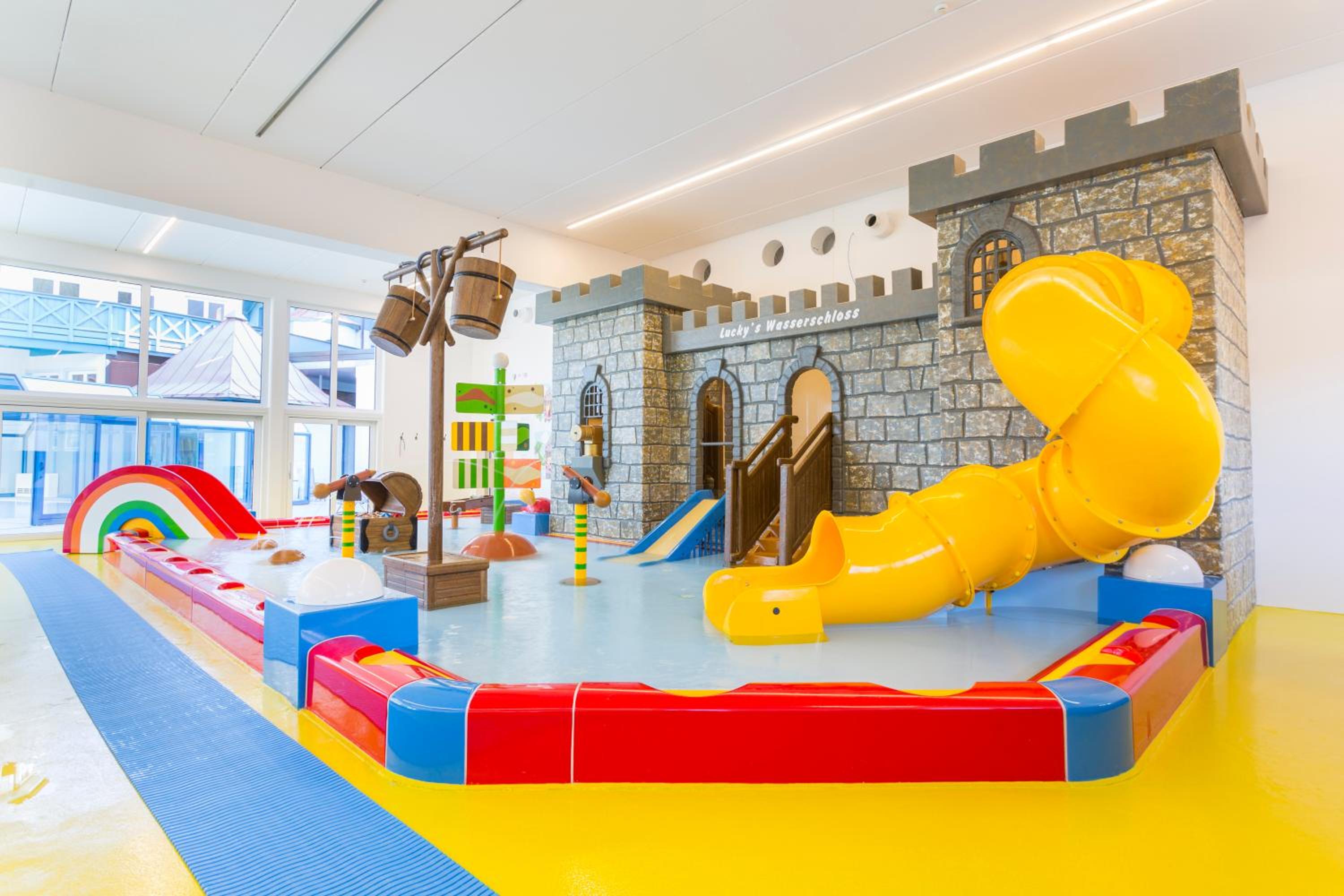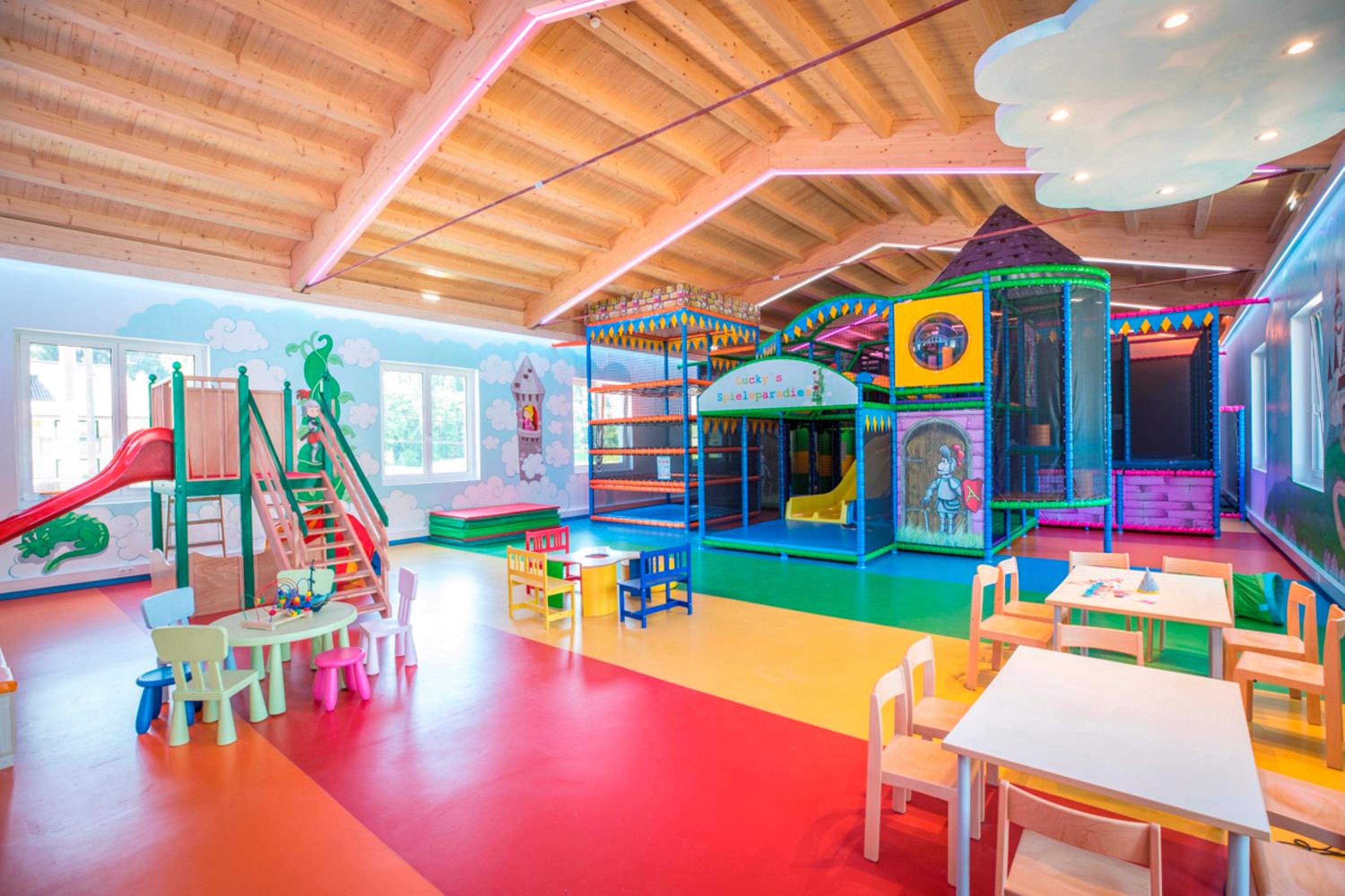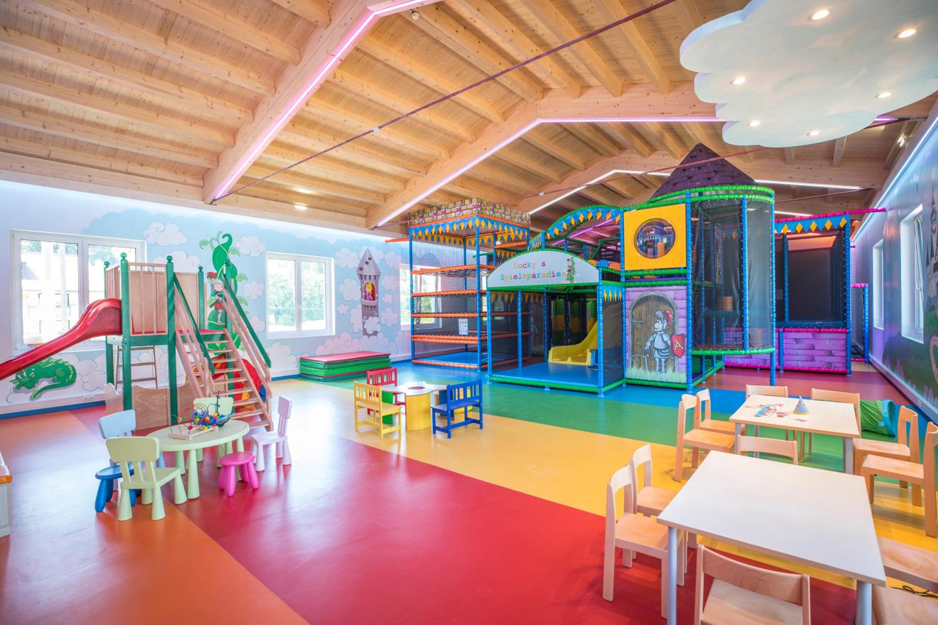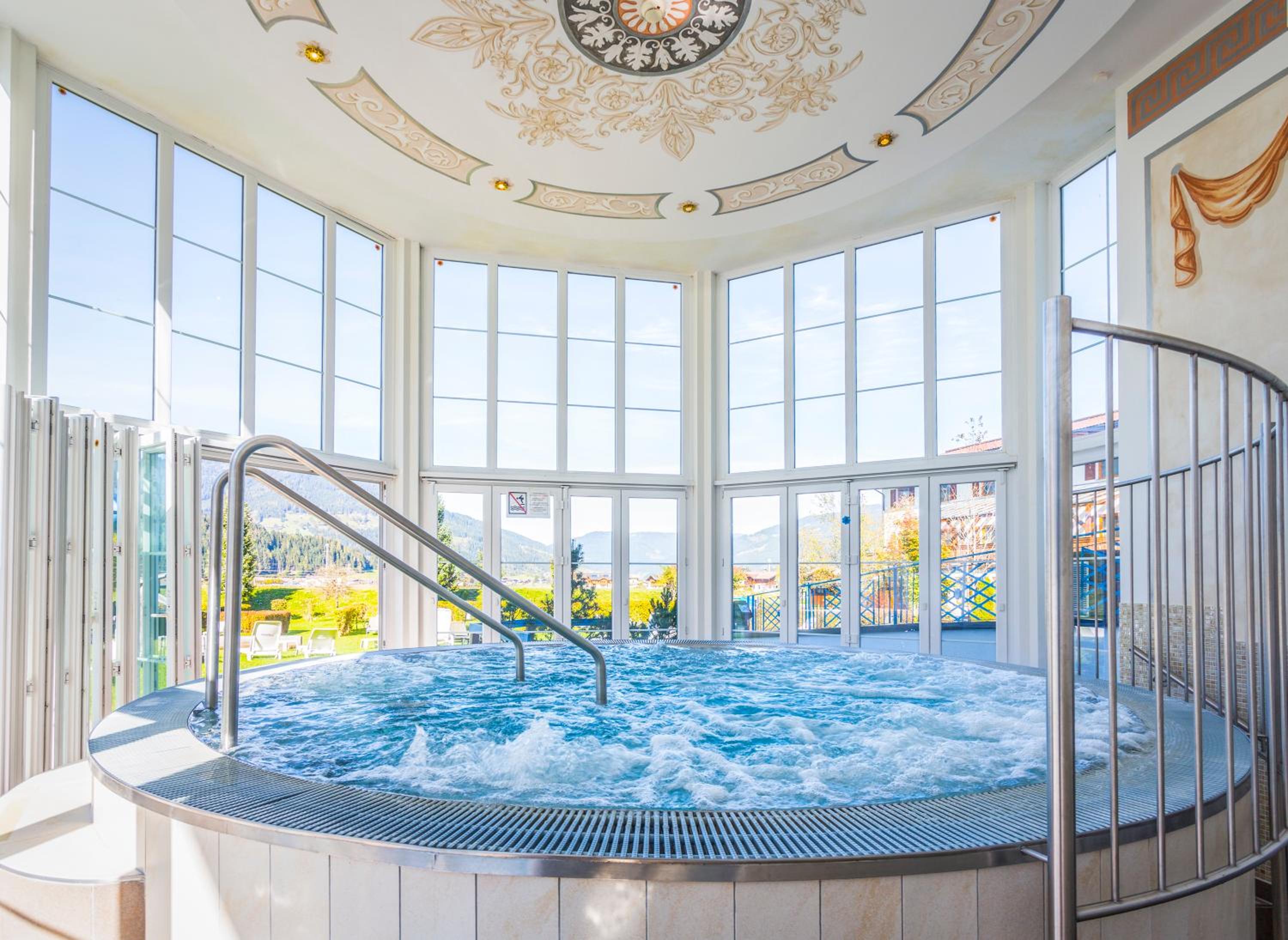 Indulge in relaxation at the 2,000 m² spa area offering various saunas, steam baths, a hot tub, and a range of massages and beauty treatments. The heated panorama indoor pool with a retractable roof is a highlight, perfect for unwinding after a day of activities.