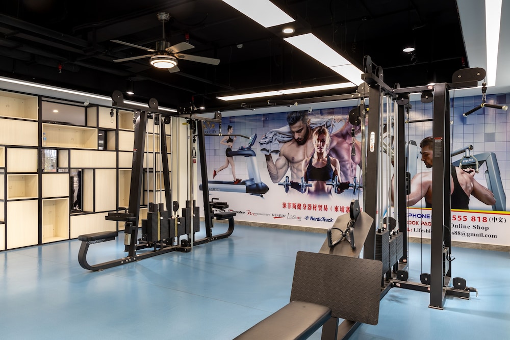 Enjoy the outdoor pool and fitness center at the hotel, perfect for leisure and relaxation.