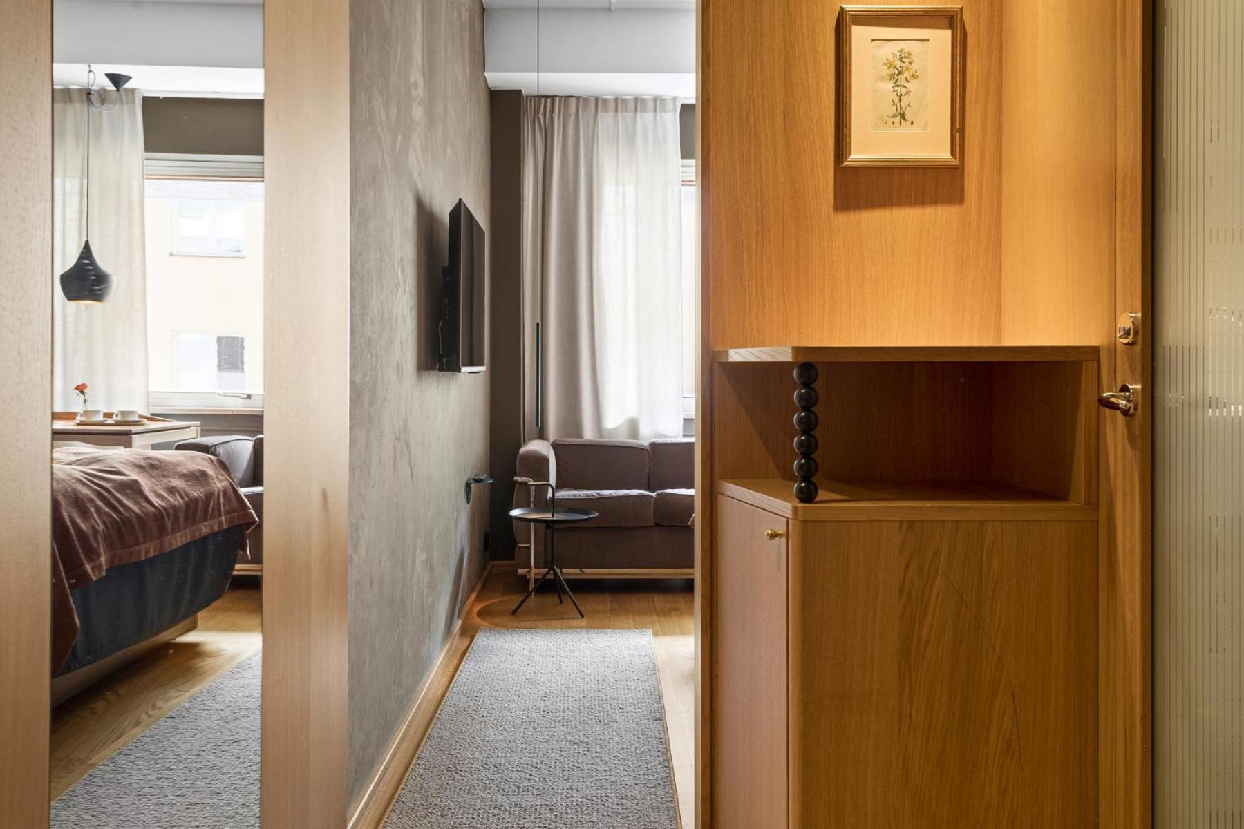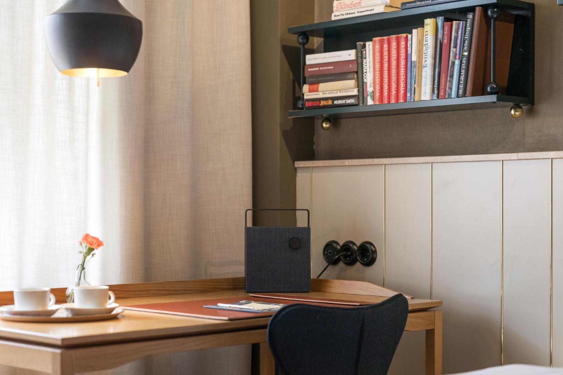 Top Lage Nähe Östermalms Salu Hall, trotzdem ruhige Zimmer. Die Einrichtung der Zimmer und der Lobby ist sehr stylish aber trotzdem gemütlich, mit echten Büchern.
