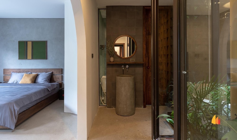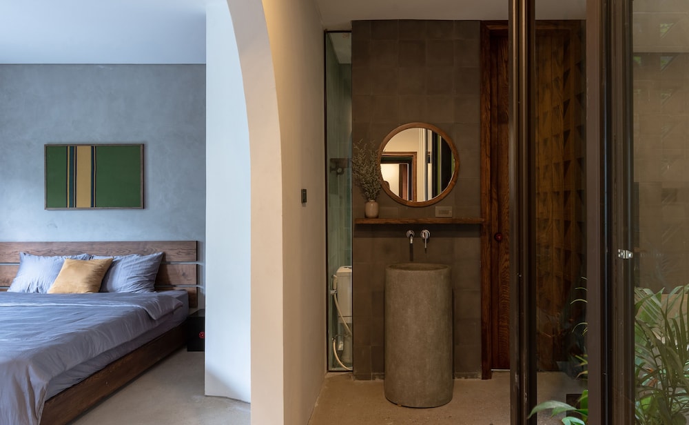 Великолепный дизайн, комфортная кровать. Нормальный санузел! В этом районе почему то принято ставить душ без перегородок, вода должна литься повсюду, на унитаз и на пол. Мы из-за этого не заселись в другой отель.