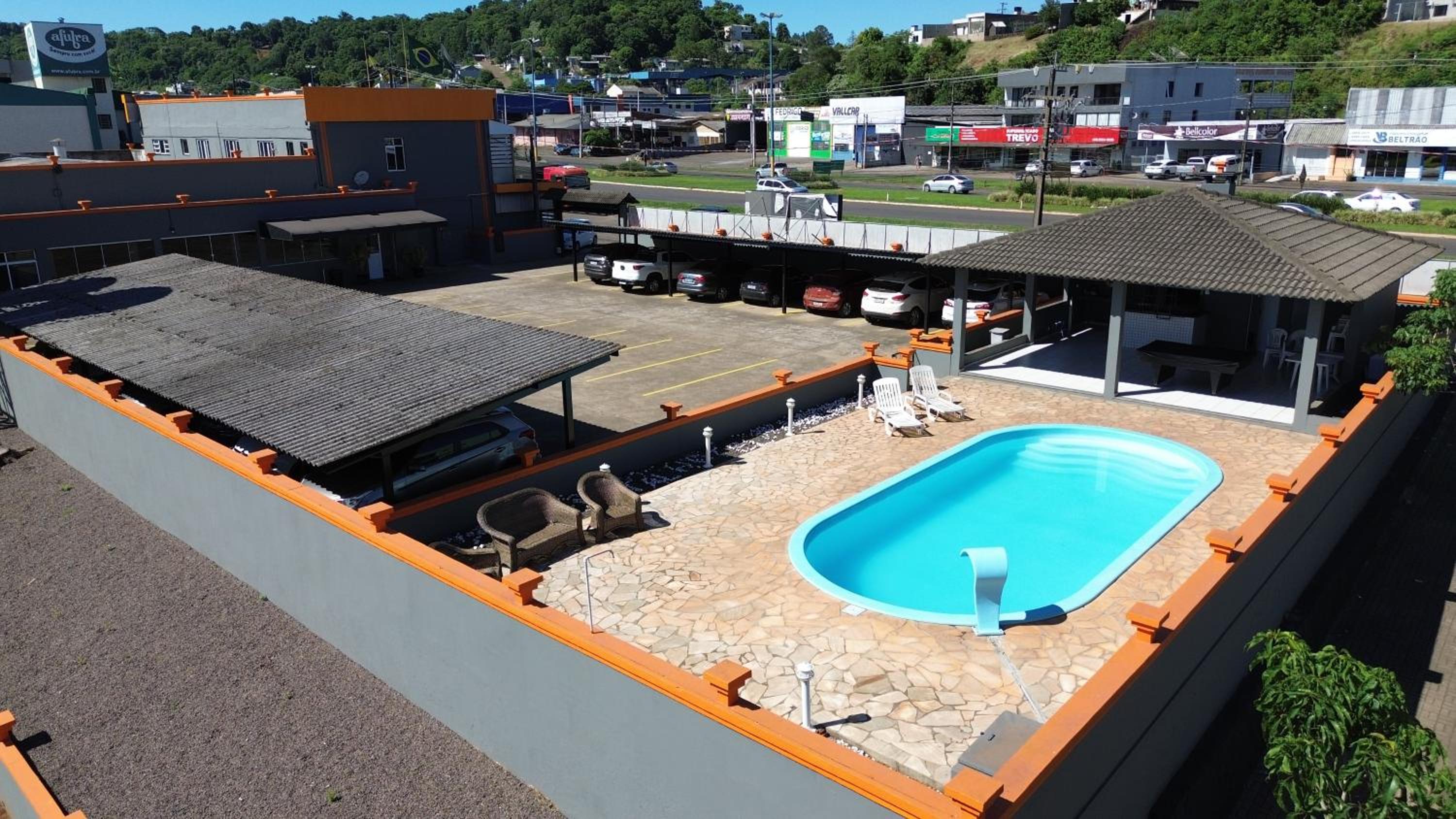 Reservei o hotel muito em razão da piscina, adiantei a minha viagem para poder aproveitar a mesma, ocorre que chegando ao hotel a mesma estava ocupada por homens que estavam saindo do trabalho, acredito que nas rodovias e ainda estavam de macacão laranja e tomaram conta do espaço, não tenho nada contra o trabalho tbm trabalho muito, mas acredito que piscina, sendo um local de lazer e que por vezes frequentam mulheres e crianças não pode ser um local de junção. Quem quer ir lá deve estar com o traje apropriado para desfrutar o ambiente.