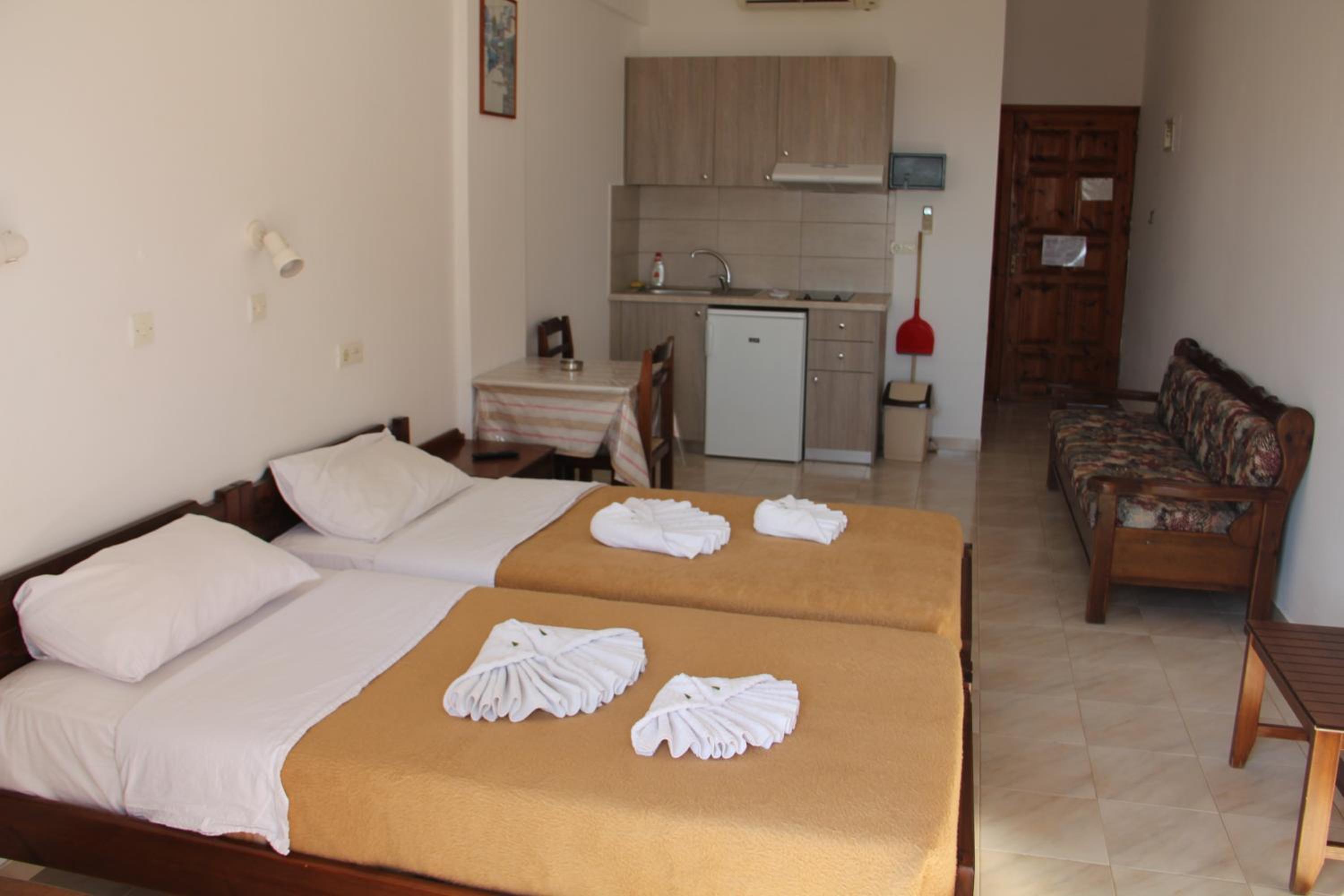 Experience the convenience of a kitchenette and the comfort of air conditioning in our simply decorated studios at Studios Stavris. Enjoy the privacy of your own bathroom and the beautiful views over the Libyan Sea from your balcony or patio.
