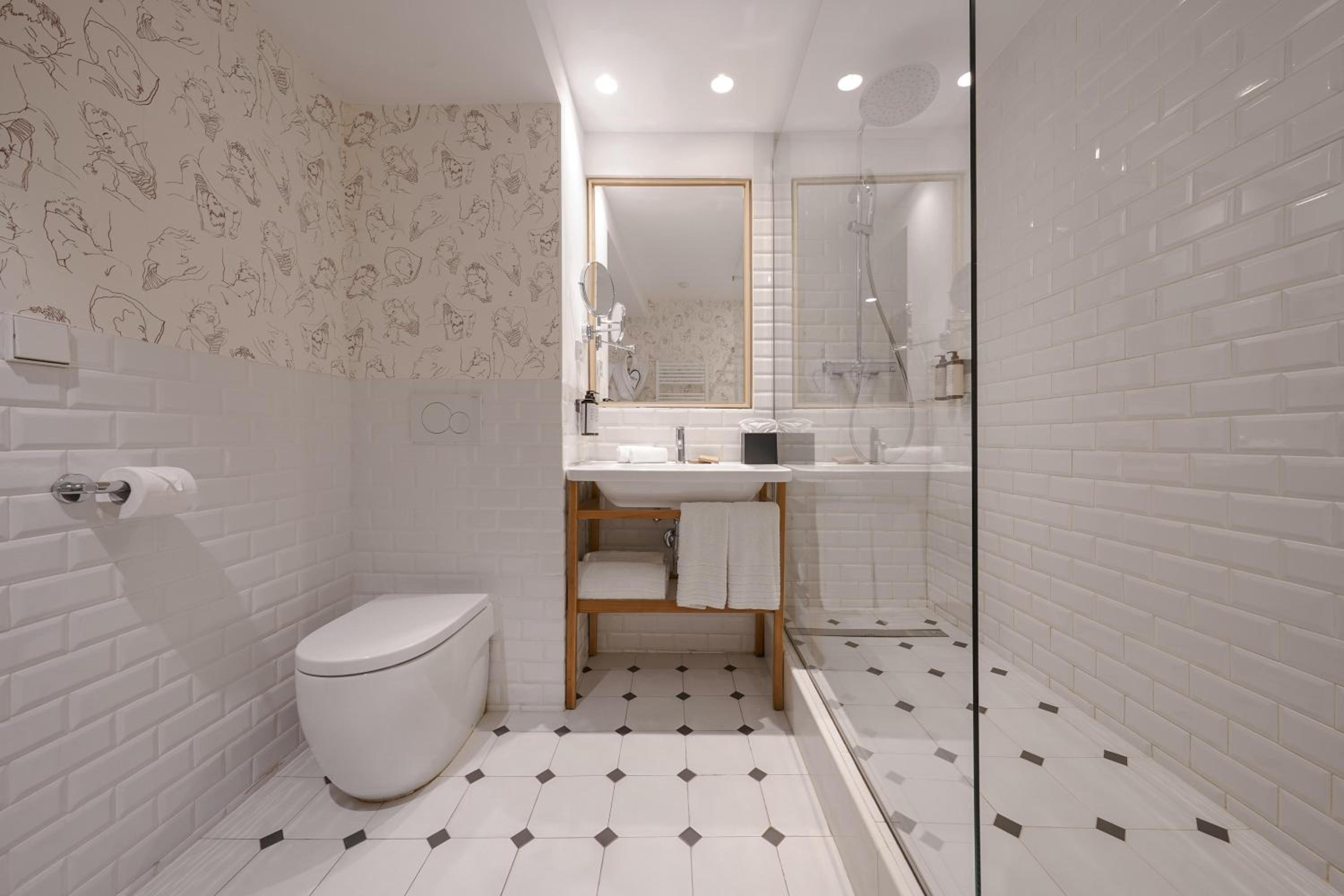 Pulitzer Paris, nestled in Paris’s 9th district, offers stylish air-conditioned rooms with a sleek monochromatic decor. Each room boasts modern amenities including a flat-screen TV and a private bathroom, ensuring a comfortable stay.
