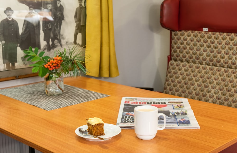 Pænt hotel centralt beliggende i Mo i Rana. God morgenbuffet i hyggelig indrettet lokale med inventar fra gamle togkupeer.
