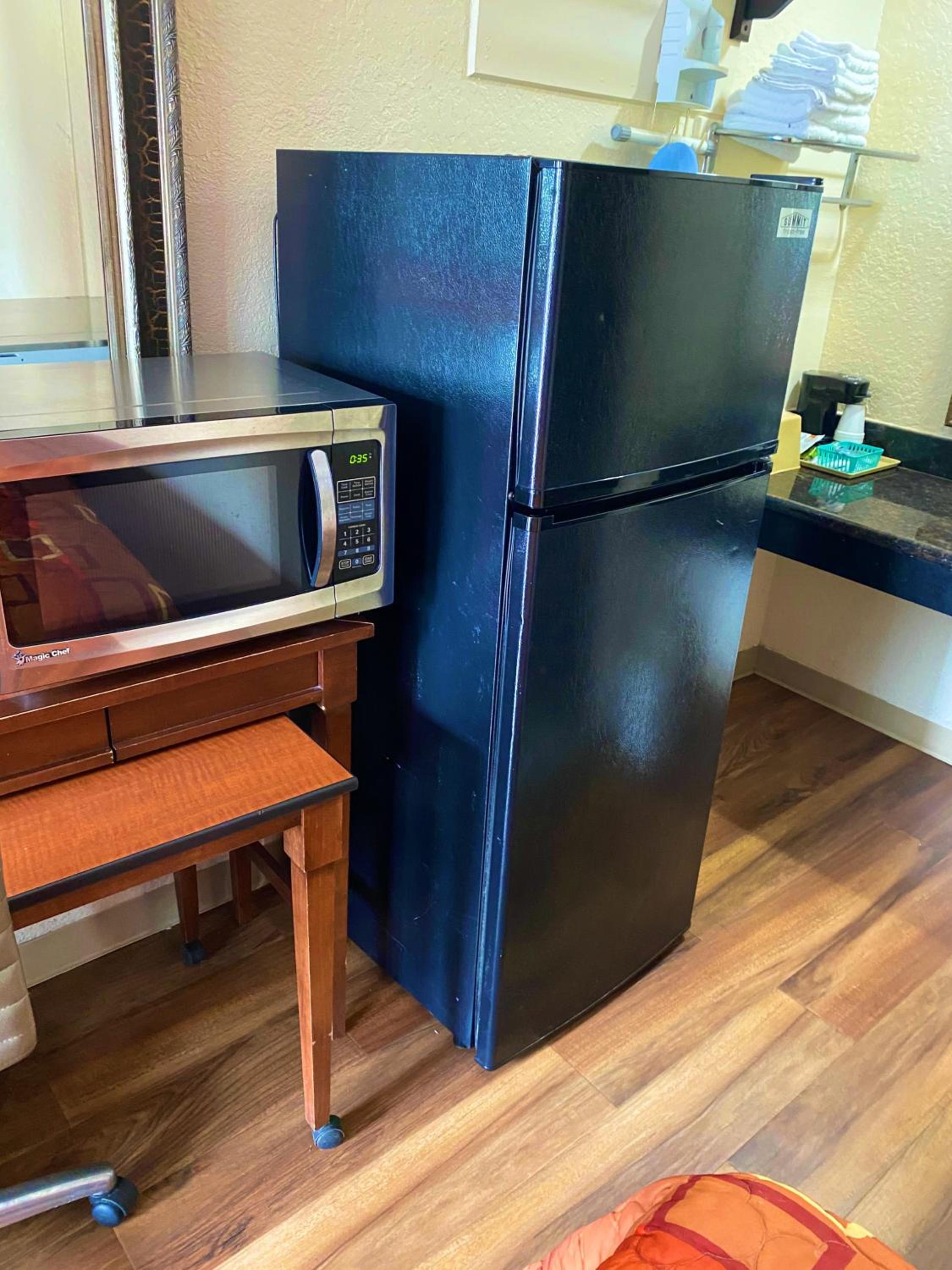 Nice rooms, at least this one had fridge, microwave, dont goto 7404 avenue j motel 6. coffee pot. Only thing that didn't work was to take a bath the thing you pull up or down to take shower or a bath didn't work, so had to take a shower only, and had small roaches in the room, all around the rubber part of the inside fridge and under microwave. Other than that it was good, and at a decent price.