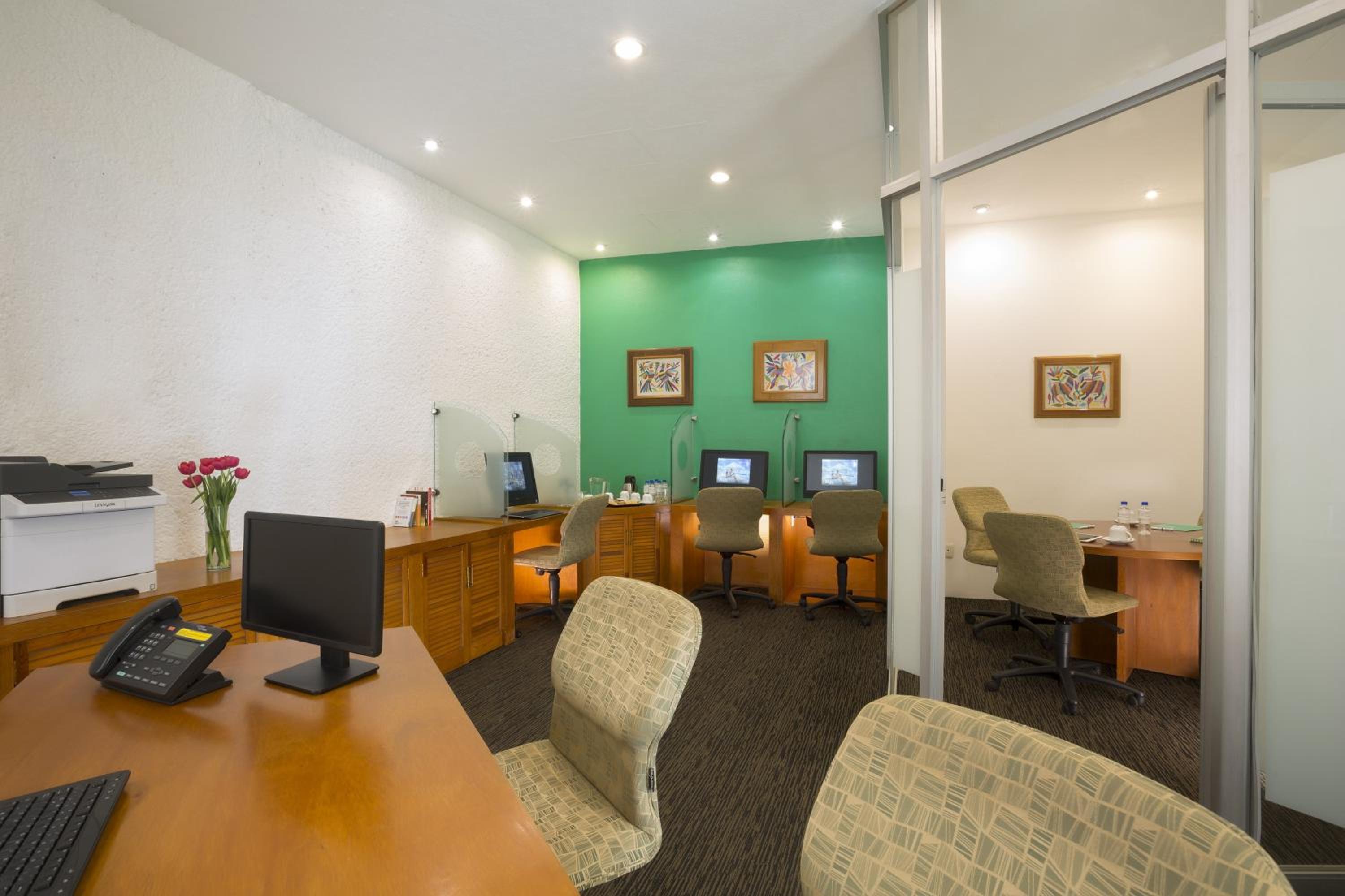 Guests can enjoy the outdoor pool and fitness centre during their stay. The on-site restaurant offers delectable traditional Mexican cuisine, while the lobby bar is perfect for unwinding after a long day.