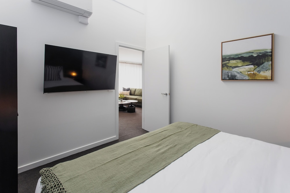 Great stay for large group of 8, comfortably slept 4 couples. Stayed there for a wedding nearby. Great large space, great kitchen, beds we’re comfortable and used the swim pool and bbq! Great hotel customer service and friendly staff
