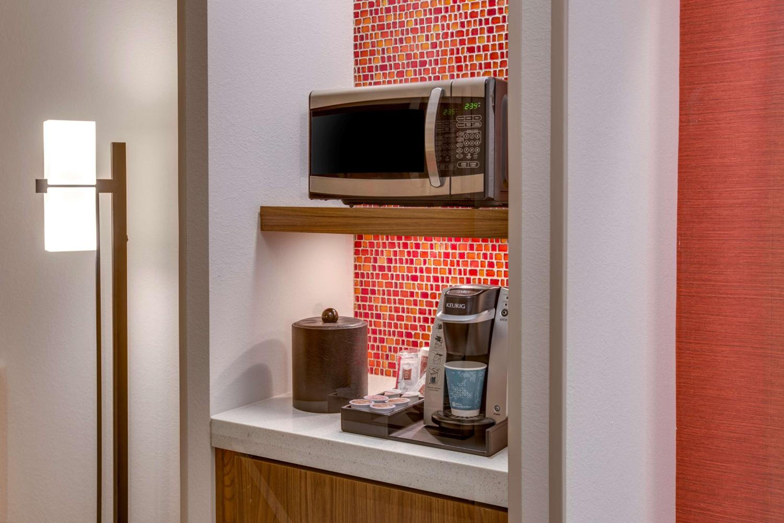 Spacious rooms come equipped with microwaves, refrigerators, and coffee makers for a home-away-from-home experience.