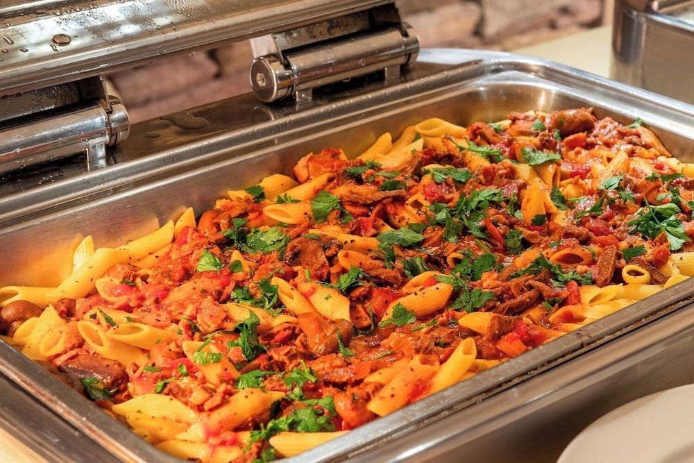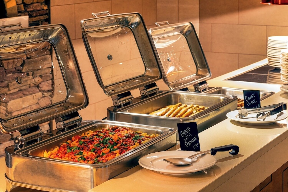 Breakfast was good, pizza in the wood shed was good, tenants lager was flat but the porretti was nice. Rooms are needing a freshen up but overall the hotels nice overall. The girls in the fun house were great with our little girl.