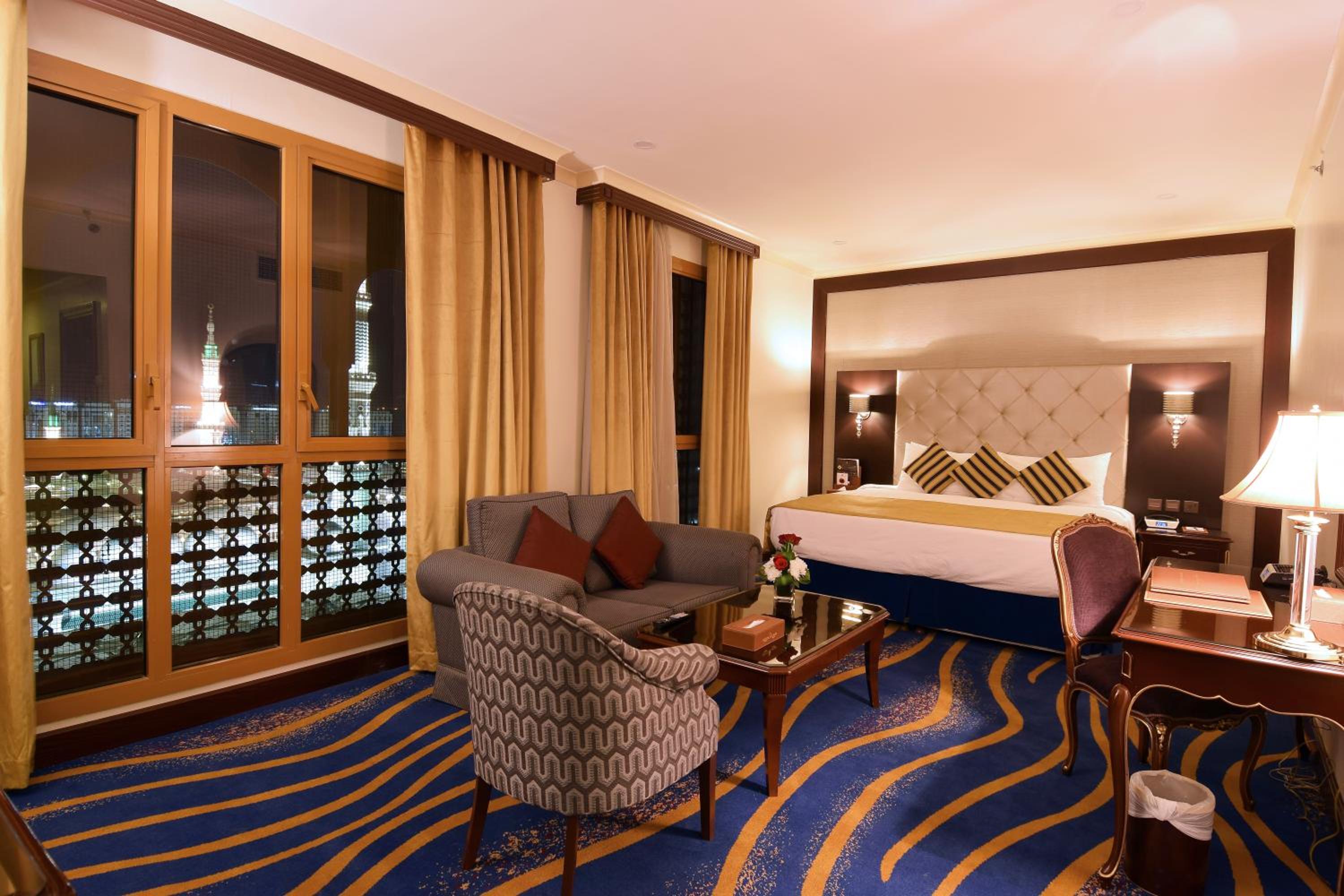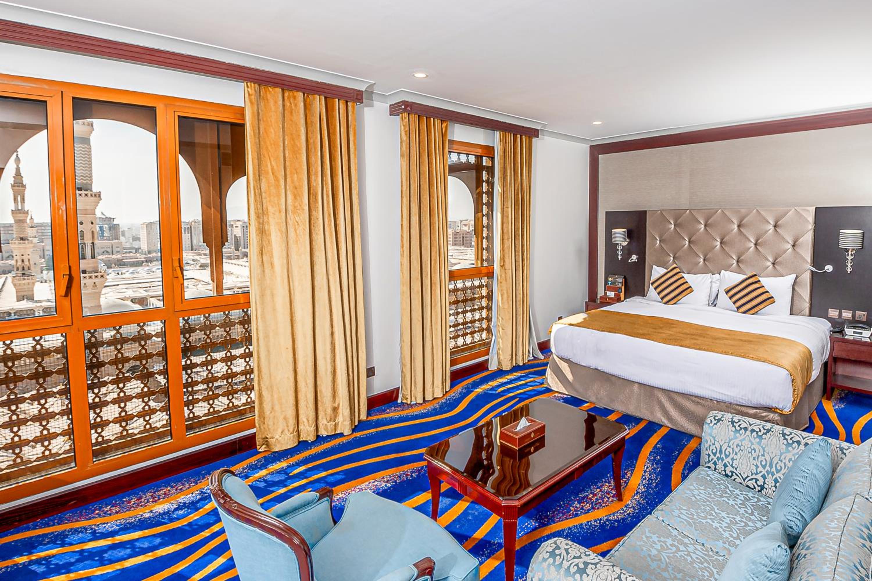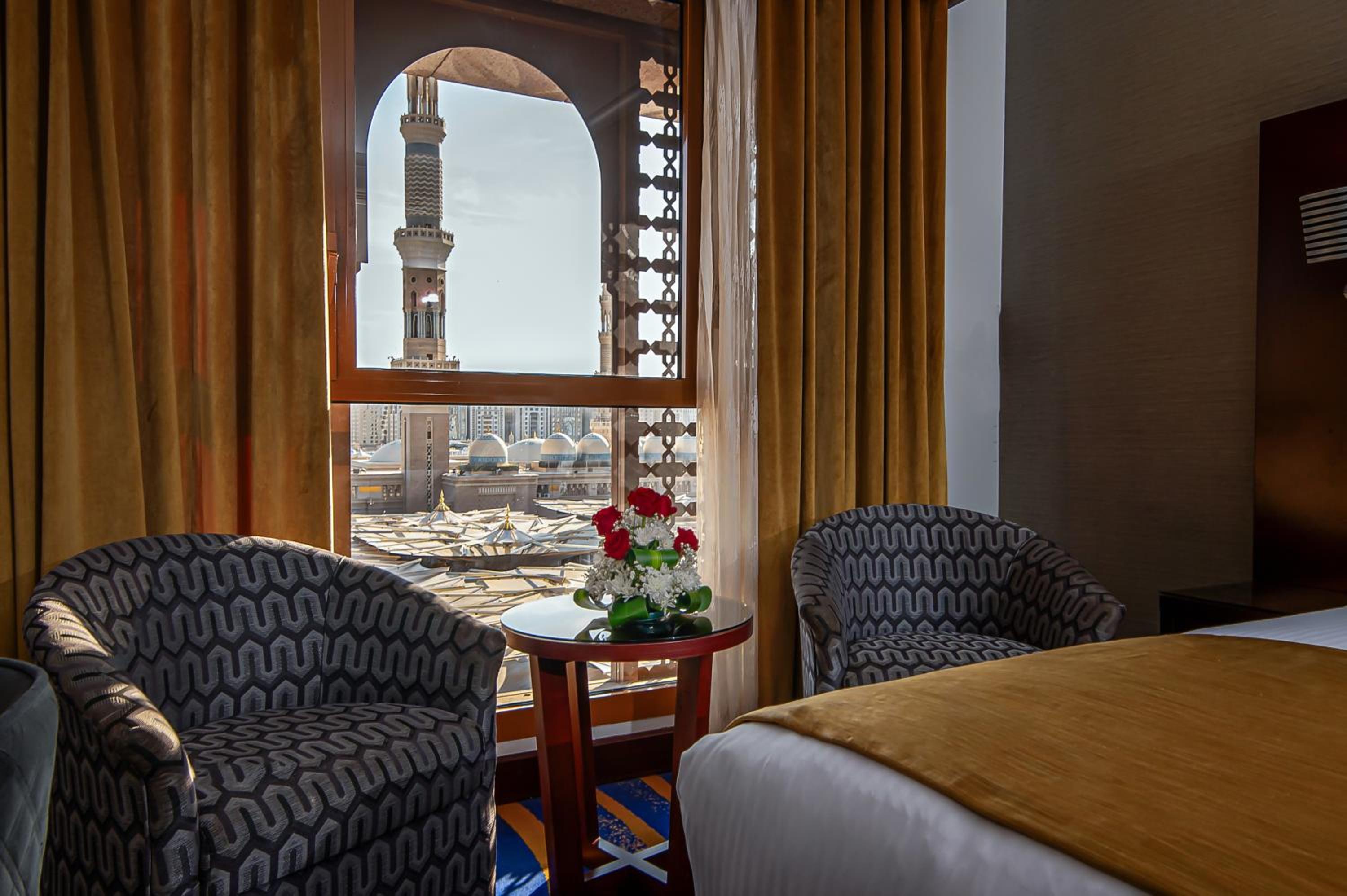 Indulge in air-conditioned rooms with flat-screen TVs, large windows, and complimentary minibar items. Enjoy the serene view of the Prophet Masjid from select rooms.