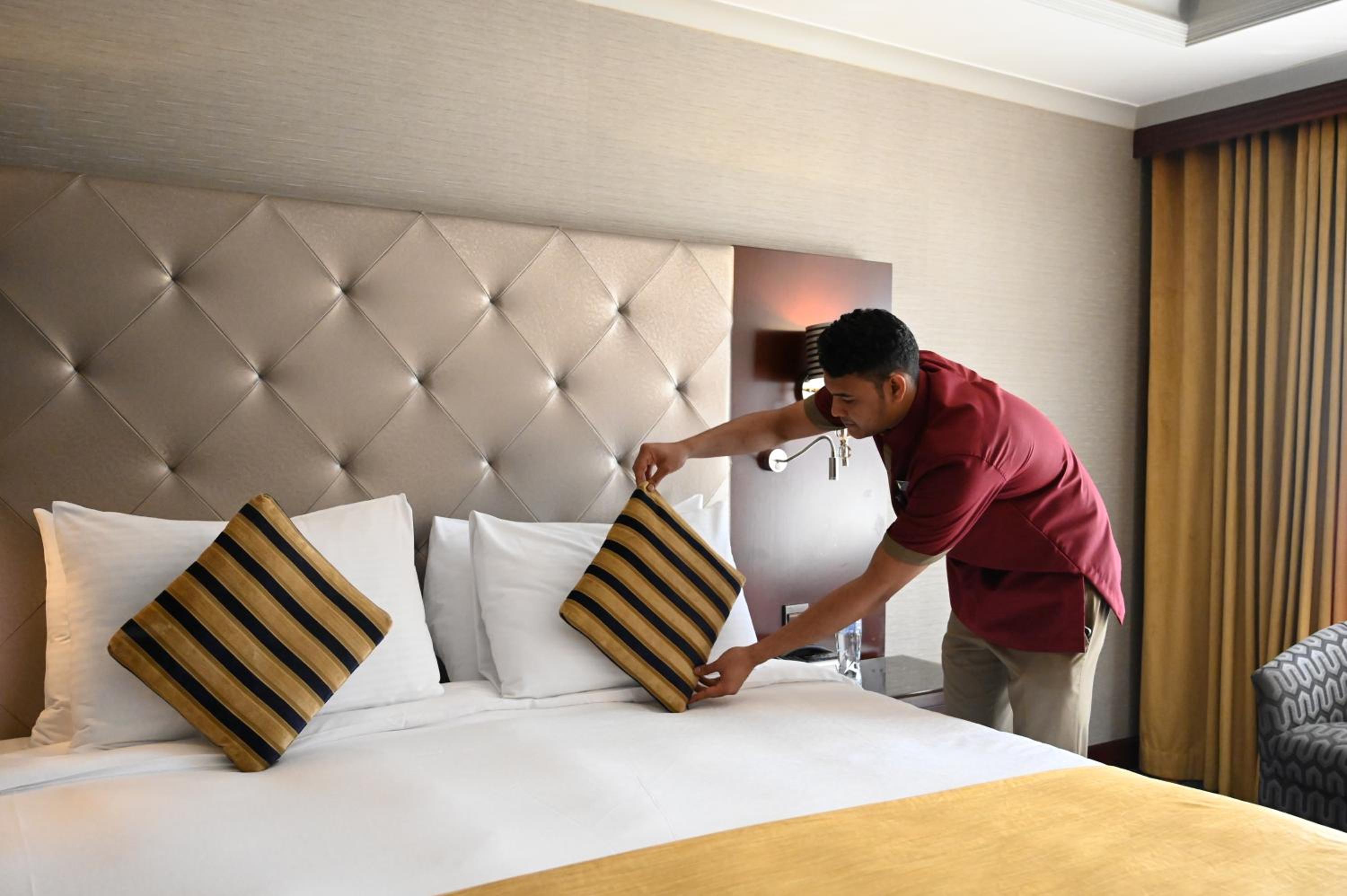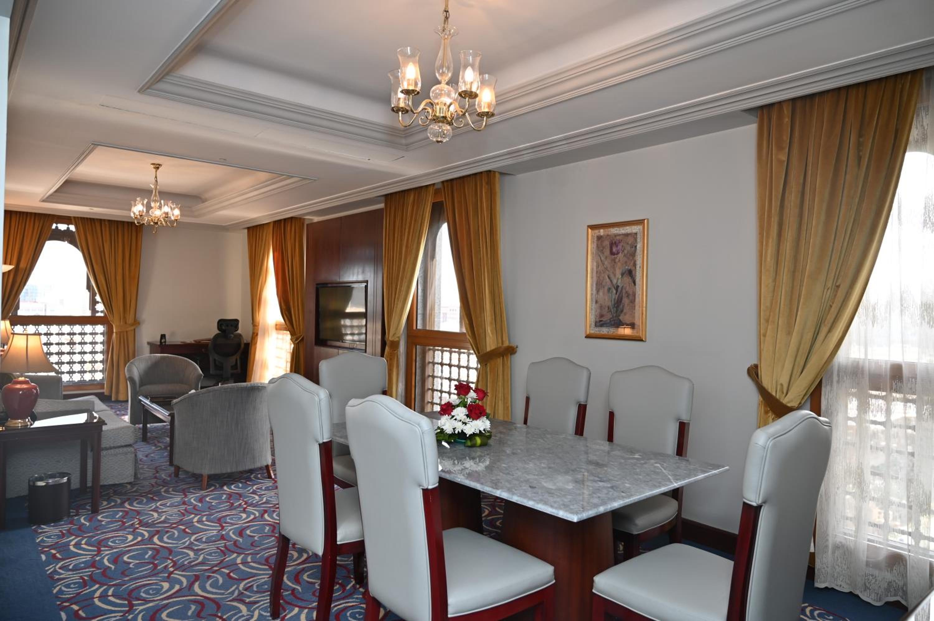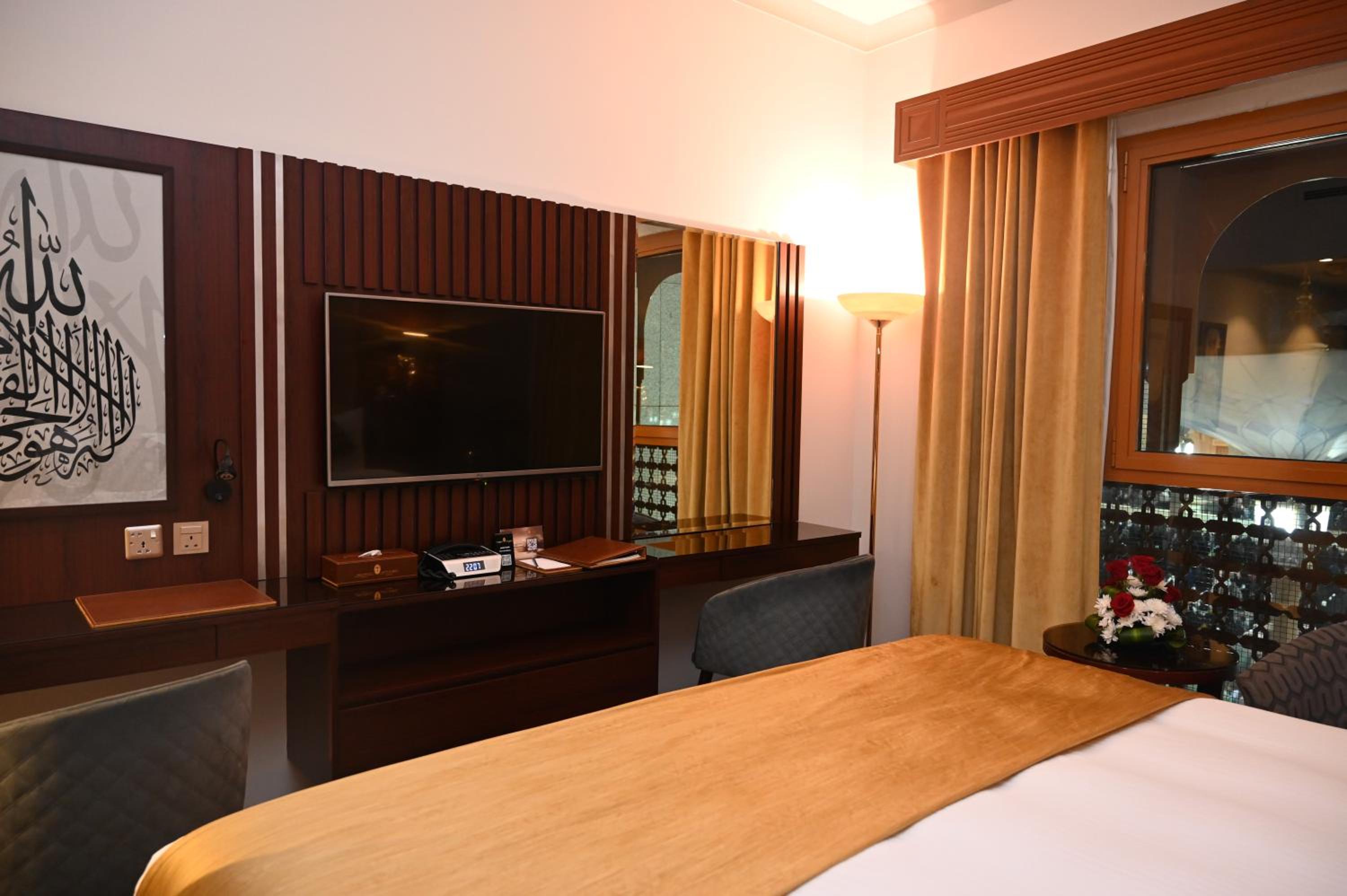 Indulge in air-conditioned rooms with flat-screen TVs, large windows, and complimentary minibar items. Enjoy the serene view of the Prophet Masjid from select rooms.