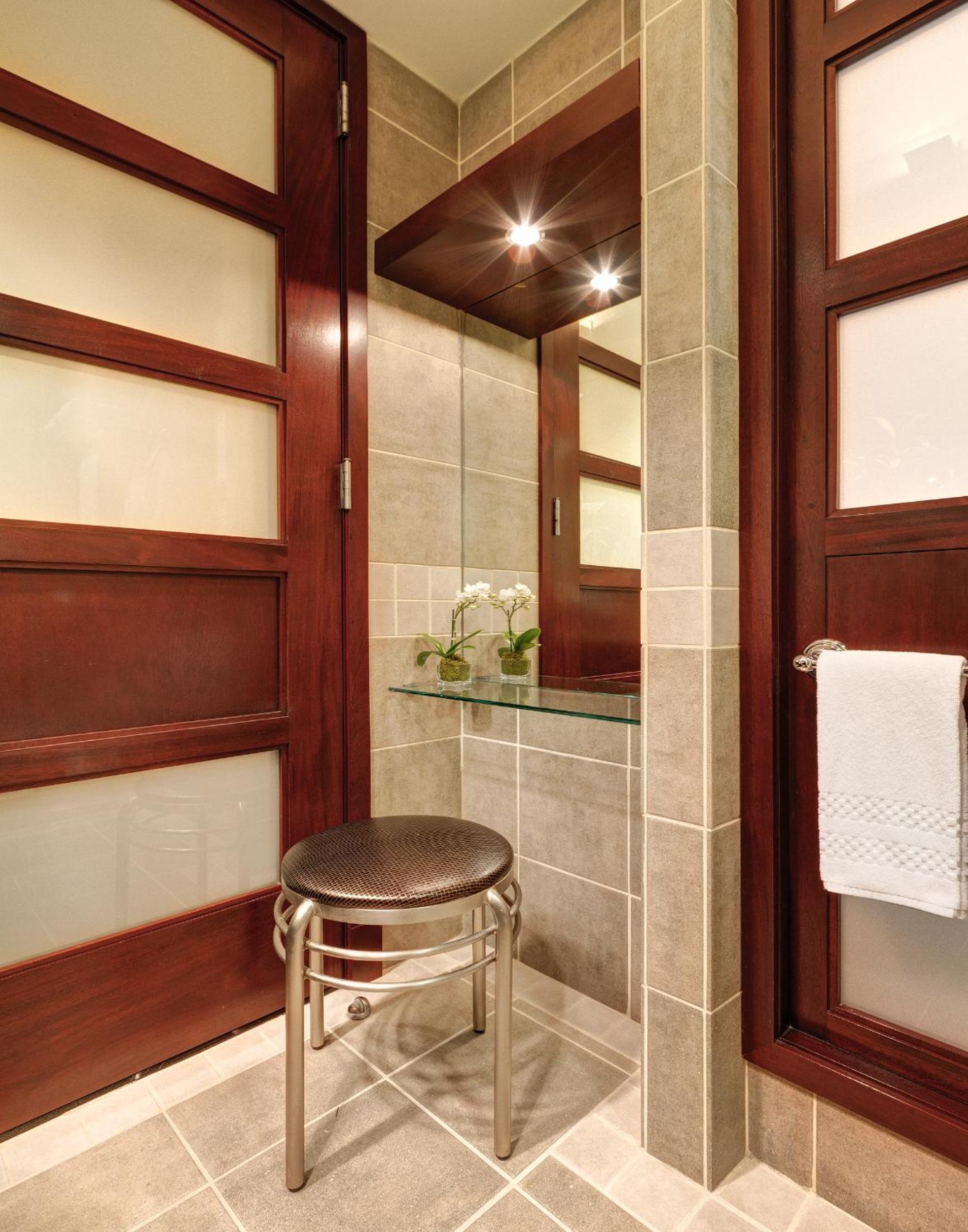 Step into a traditional American library-themed room with modern amenities like a flat-screen TV and iPod docking station. Enjoy the comfort of a provided bathrobe and slippers during your stay.
