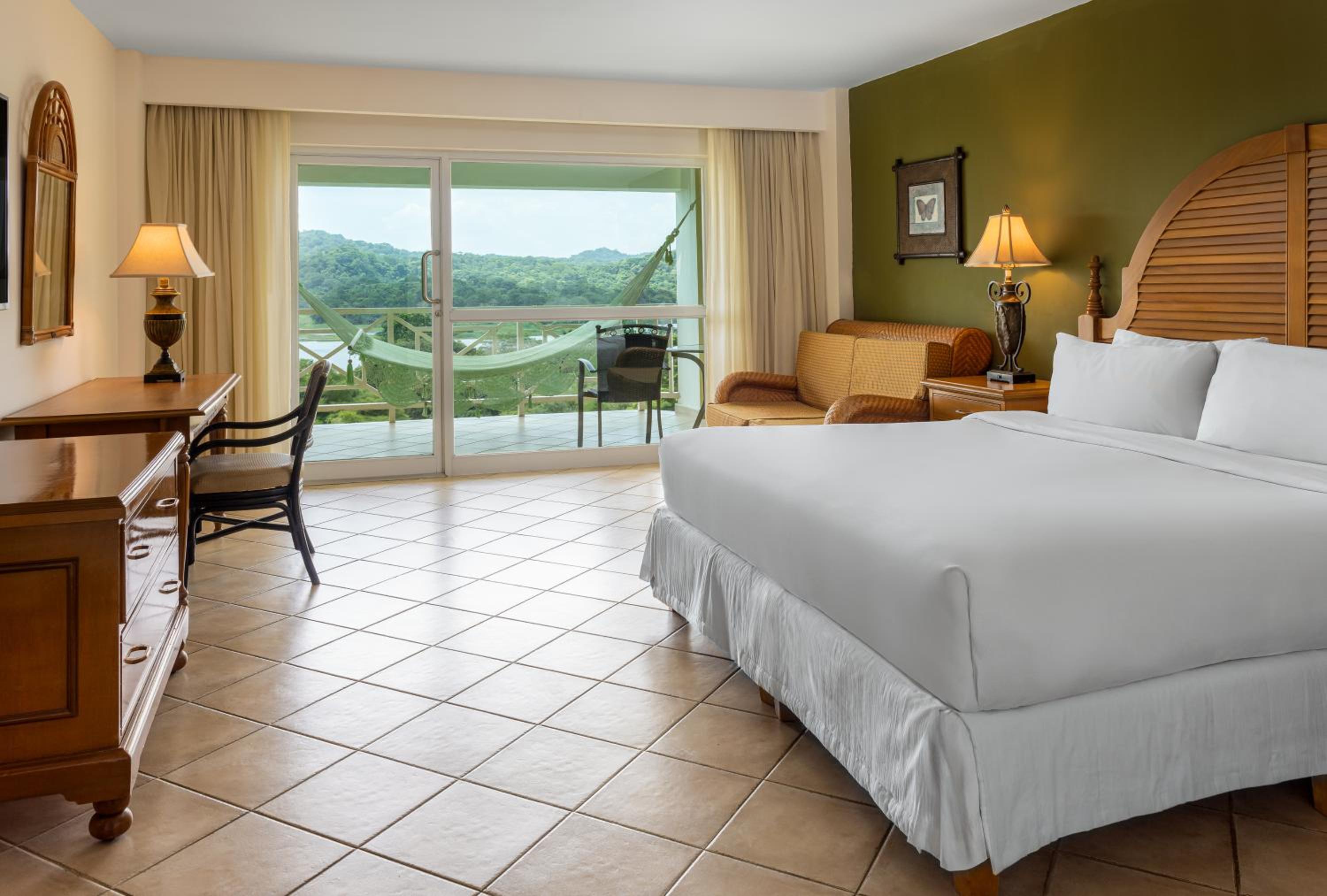 The Gamboa Rainforest Reserve, nestled in Soberania National Park, offers elegantly appointed rooms and suites with breathtaking views of the River Chagres. Each room features a private balcony, flat-screen TV, and a lavish marble bathroom for your comfort and relaxation.