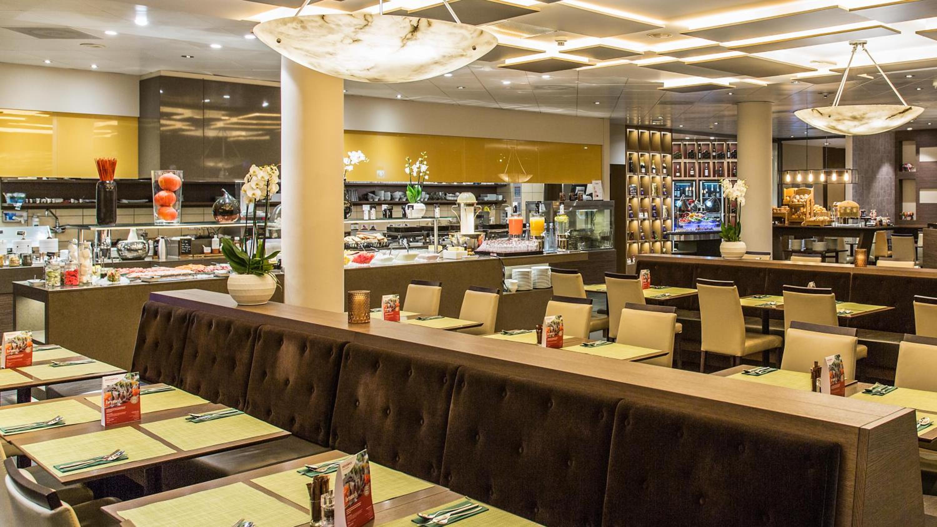 Indulge in fine cuisine at Mövenpick Restaurant and Les Saisons Restaurant, offering a wide selection of gourmet creations. The elegantly appointed non-smoking rooms feature modern amenities including air conditioning, minibar, and free WiFi.
