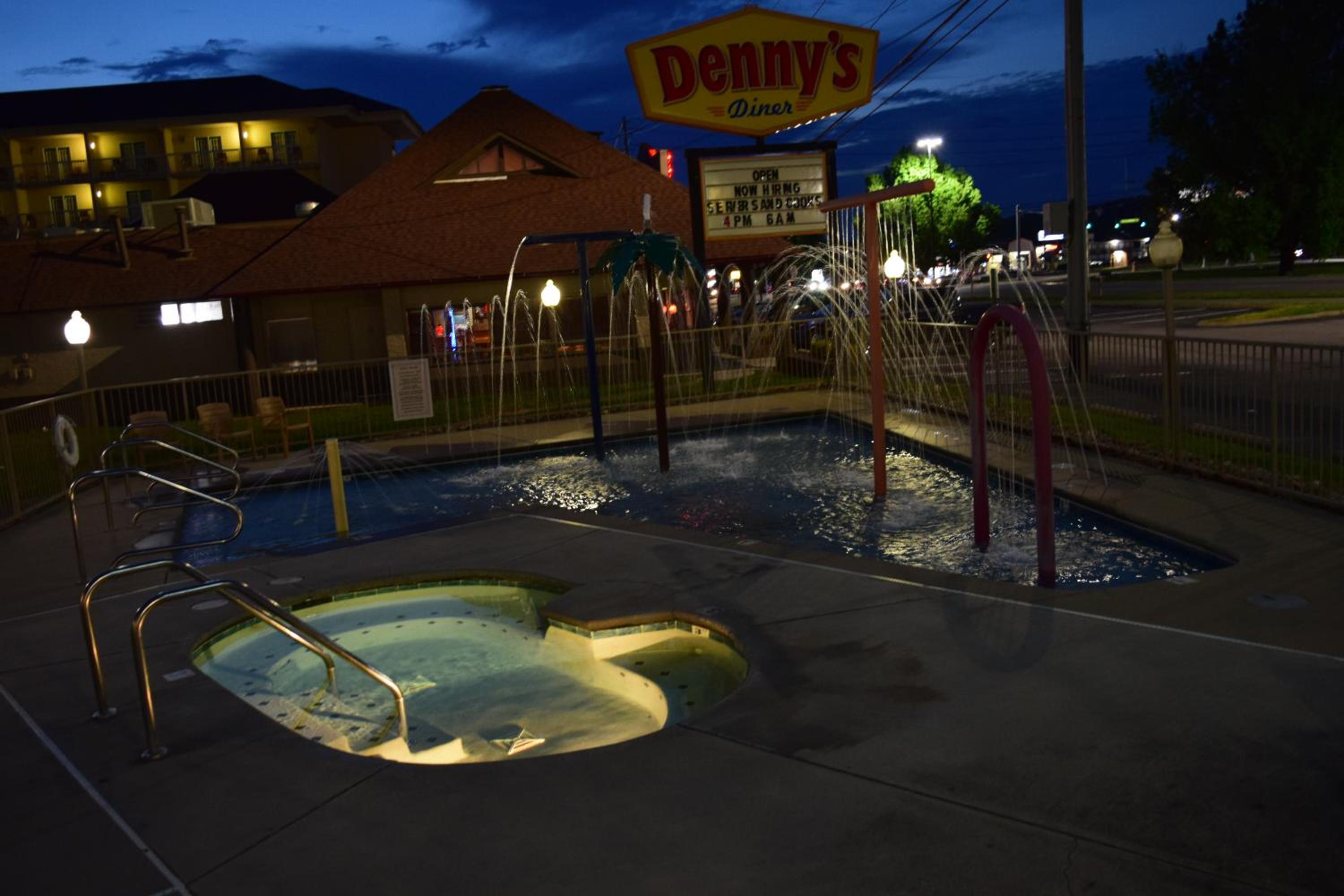 Guests can enjoy a variety of amenities including a large heated outdoor pool, kiddie pool, hot tub, and splash pad. The free hot breakfast and proximity to restaurants make dining convenient for families.