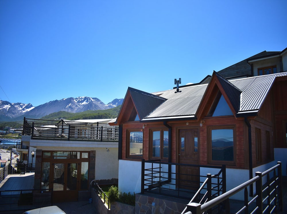 Terrace and Garden Views: Enjoy breathtaking views from the terrace and garden of Apart Hotel Balcones del Beagle.
