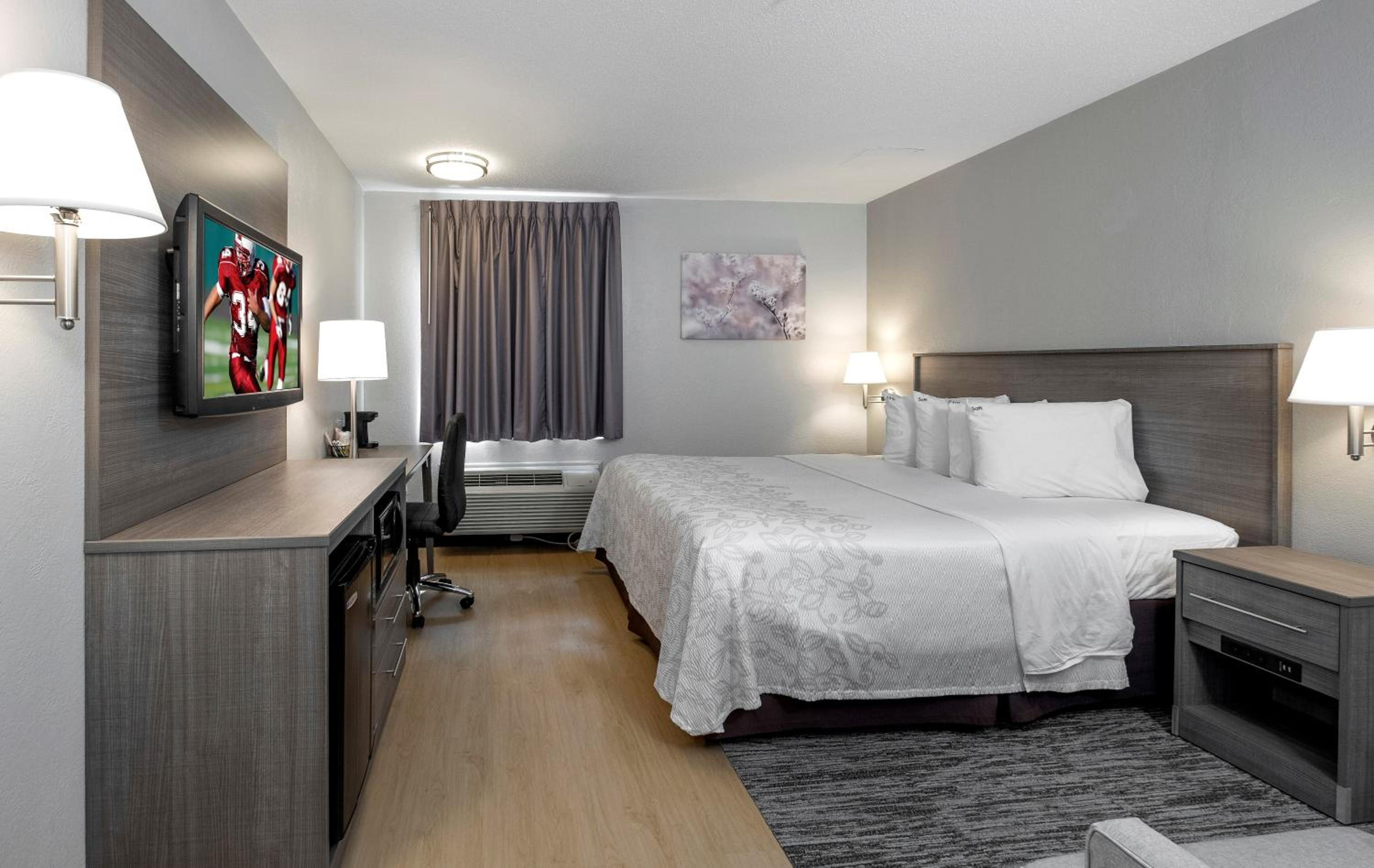 I used to stay at this hotel a lot about 10 years ago but haven't traveled back to the area again until recently. When looking for a hotel this one was the same price as the Holiday Inn that is nearby but offered a king bed instead of a queen and I booked the room. I wish I stayed at the other hotel. When I got to the room it had a sign saying that it was a "premium room" but that couldn't be further from the truth. It was run down, the carpet had holes in it, the shower looked gross, rusted out with a horrible patch job near the drain and it also didn't drain properly so I was standing in about an inch of water the entire time I was showering. The elevator seemed like it was on its last leg and made me nervous every time I used it. The whole place smelled like weed, from the front lobby, the elevator, the hallways and even my hotel room. I highly suggest you stay somewhere else.