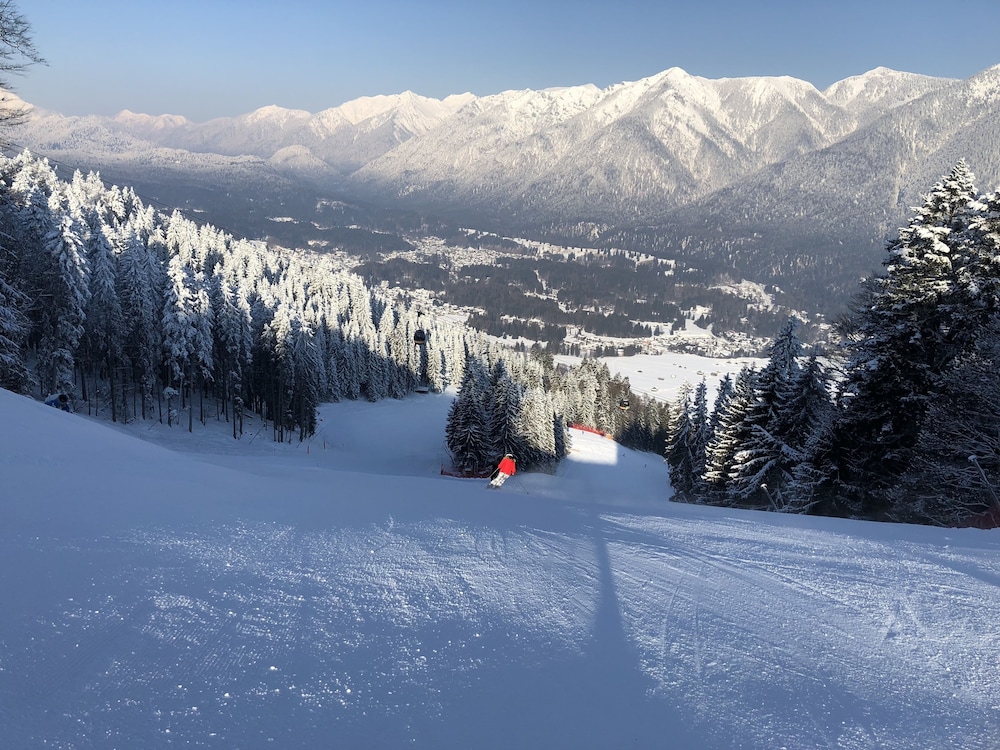 The hotel was walking distance to the center of Garmisch. Upscale shopping and a variety of restaurants are close by. The room was spacious, at least double the size I expected. The hotel staff was gracious and helpful. I would definitely return.