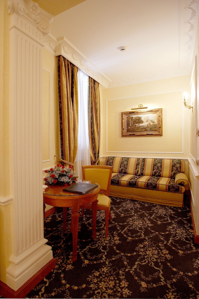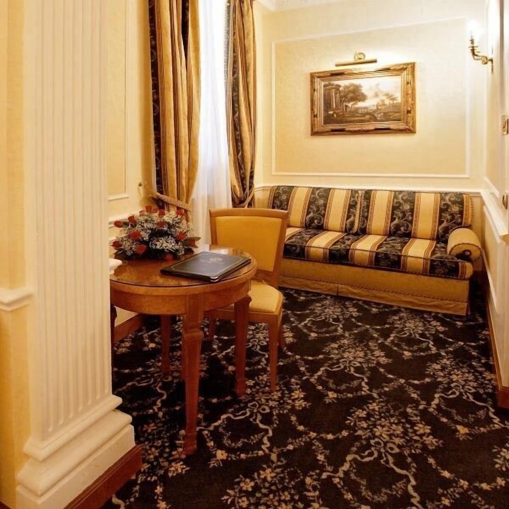 One of the last remaining Italian hotels. Classic, traditional and authentic to the smallest detail. Such a joy to find a hotel true to the Italian culture despite so many others “renovating” and “updating” to the tacky business-modern-minimalist-IKEA image. If this hotel ever compromises their cultural integrity it will be regretful. Hopefully they value timeless over trendy. The only renovation should be to remove the carpet and return to original stone or tile. Everything else should remain untouched.