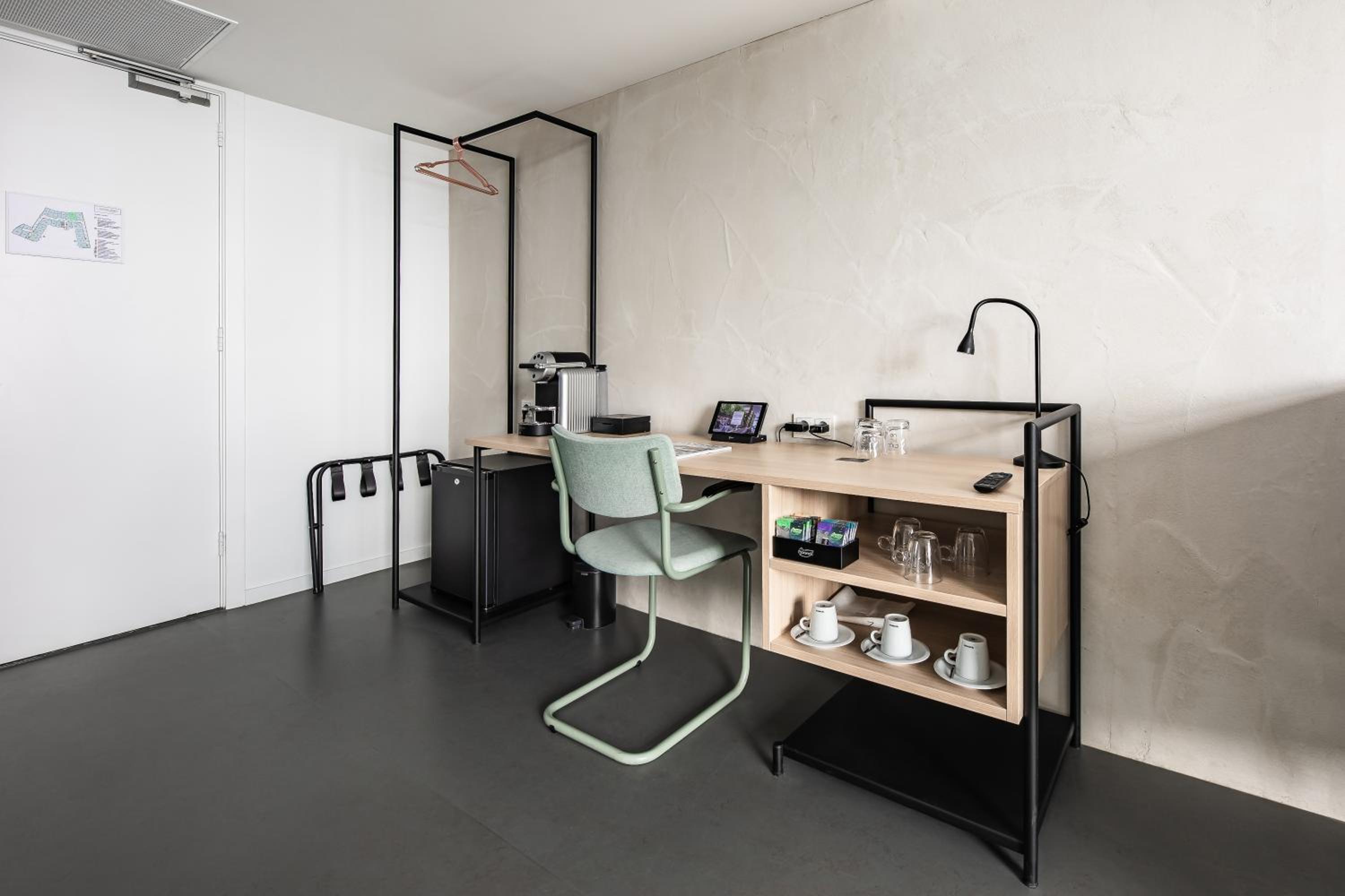Indulge in the comfort of rooms at Hotel Gooiland equipped with a flatscreen TV, rain shower, air conditioning, and Nespresso coffee- and tea facilities, all showcasing brands and designs from Dutch origin.