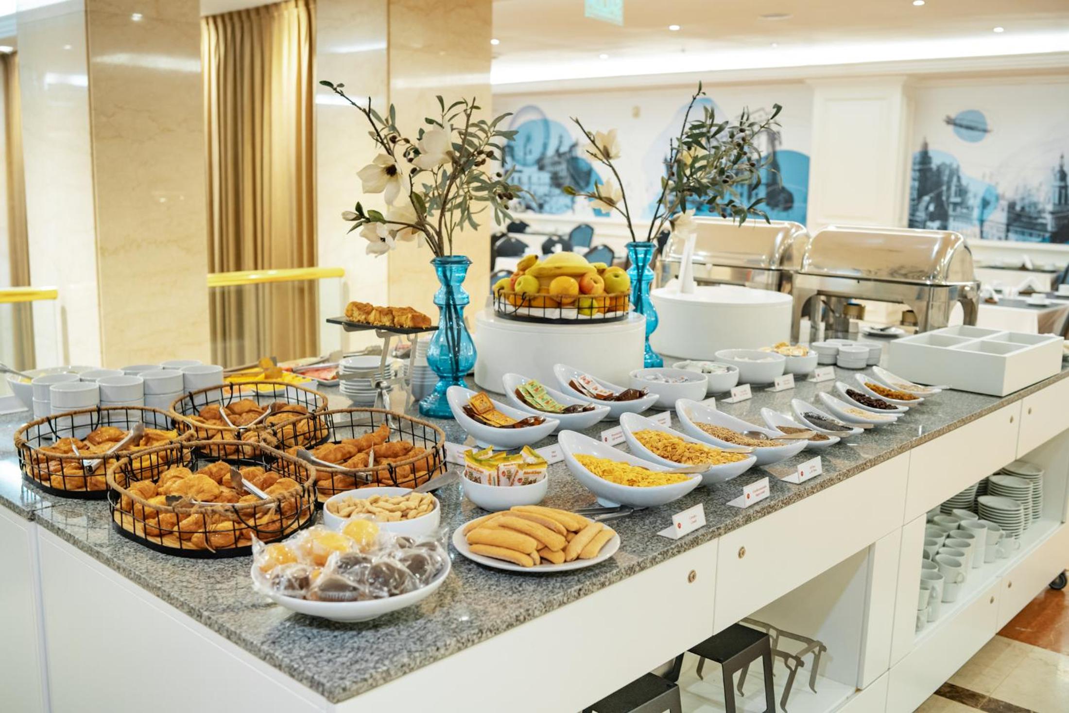 Отель устал, душ с плесенью, смеситель закреплен хомутами, все ржавое, полотенца и белье серые. Спорт зал в подсобке тренажеры сломаны. Вид на стройку, завтрак скудный
