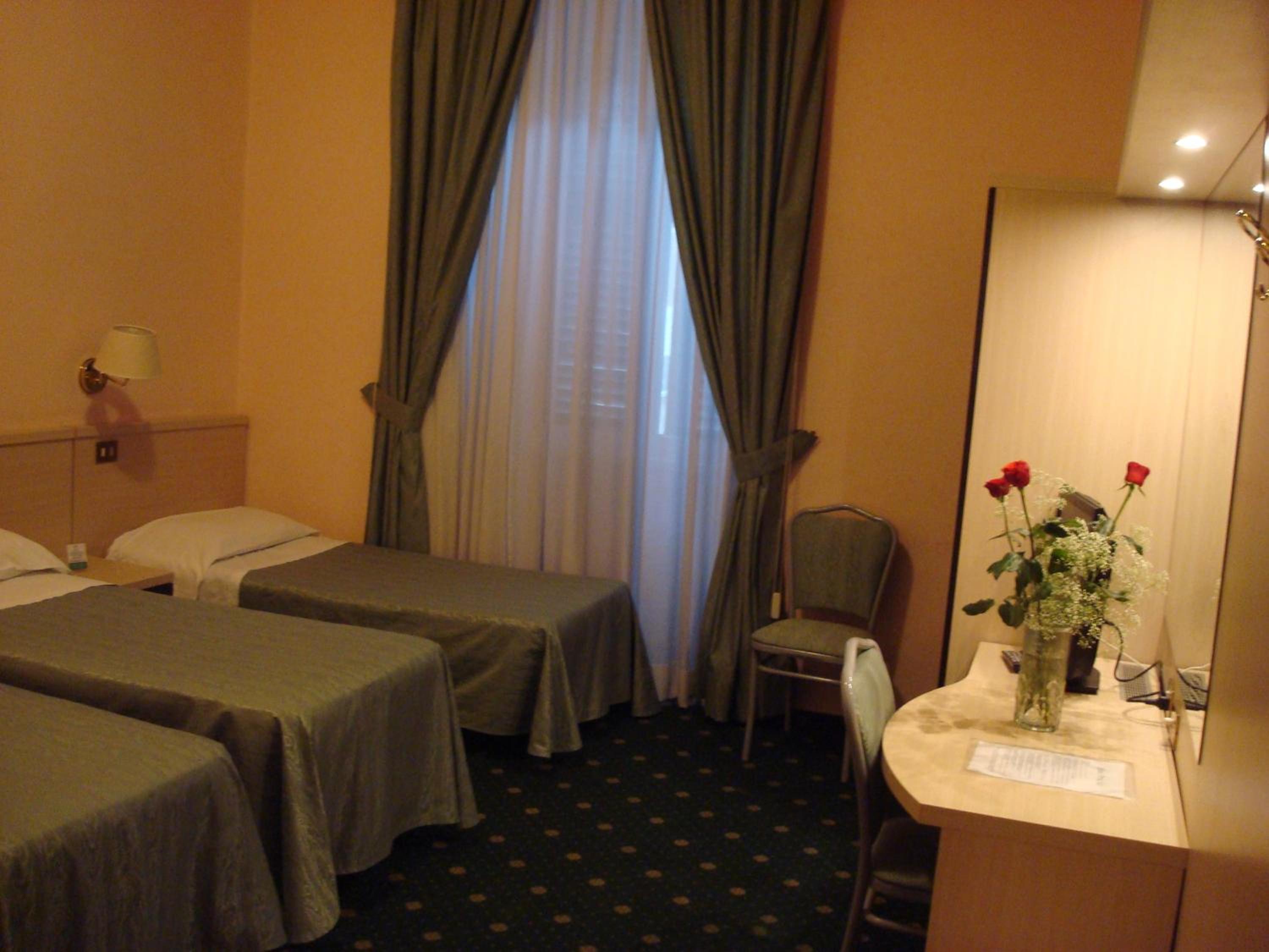 We spent a week in the hotel in February. We lived in a room on the first floor. It was freshly renovated, spacious and very clean. The staff was nice and helpful. Cleaning was done daily, and towels were replaced each day. The room was equipped with a fridge and a TV, and the Wi-Fi connection worked well. Breakfast was served at a café next door to the hotel and included cereals, milk, eggs, bread, cheese, ham, and pastries. It was also possible to order coffee at the bar (special thanks to the nice lady serving it:)). The hotel's location was very convenient, being close to attractions like the Colosseum, Villa Borghese, and the Trevi Fountain. Directly across from the hotel, there was a nice pizzeria and a mini-market.