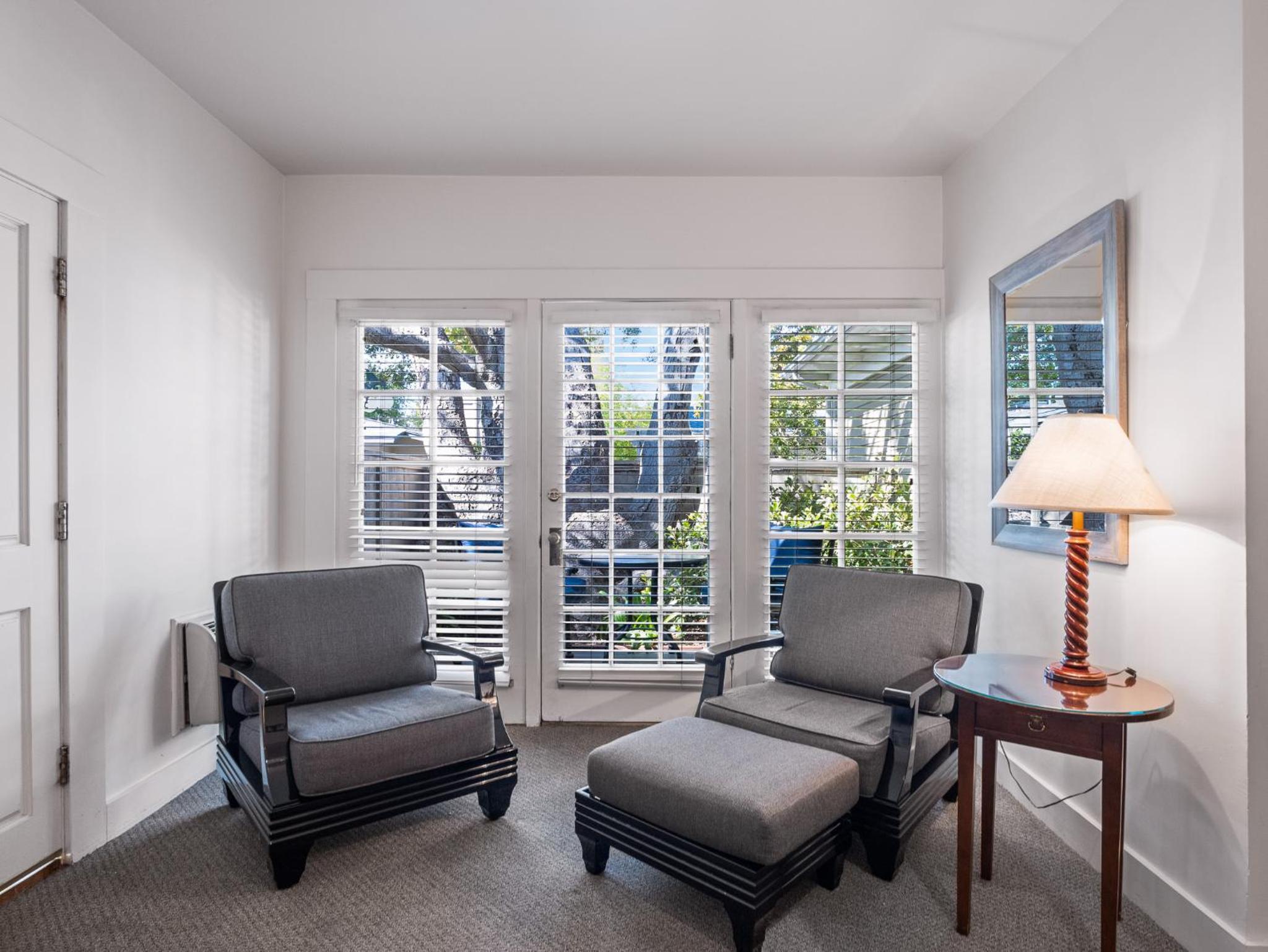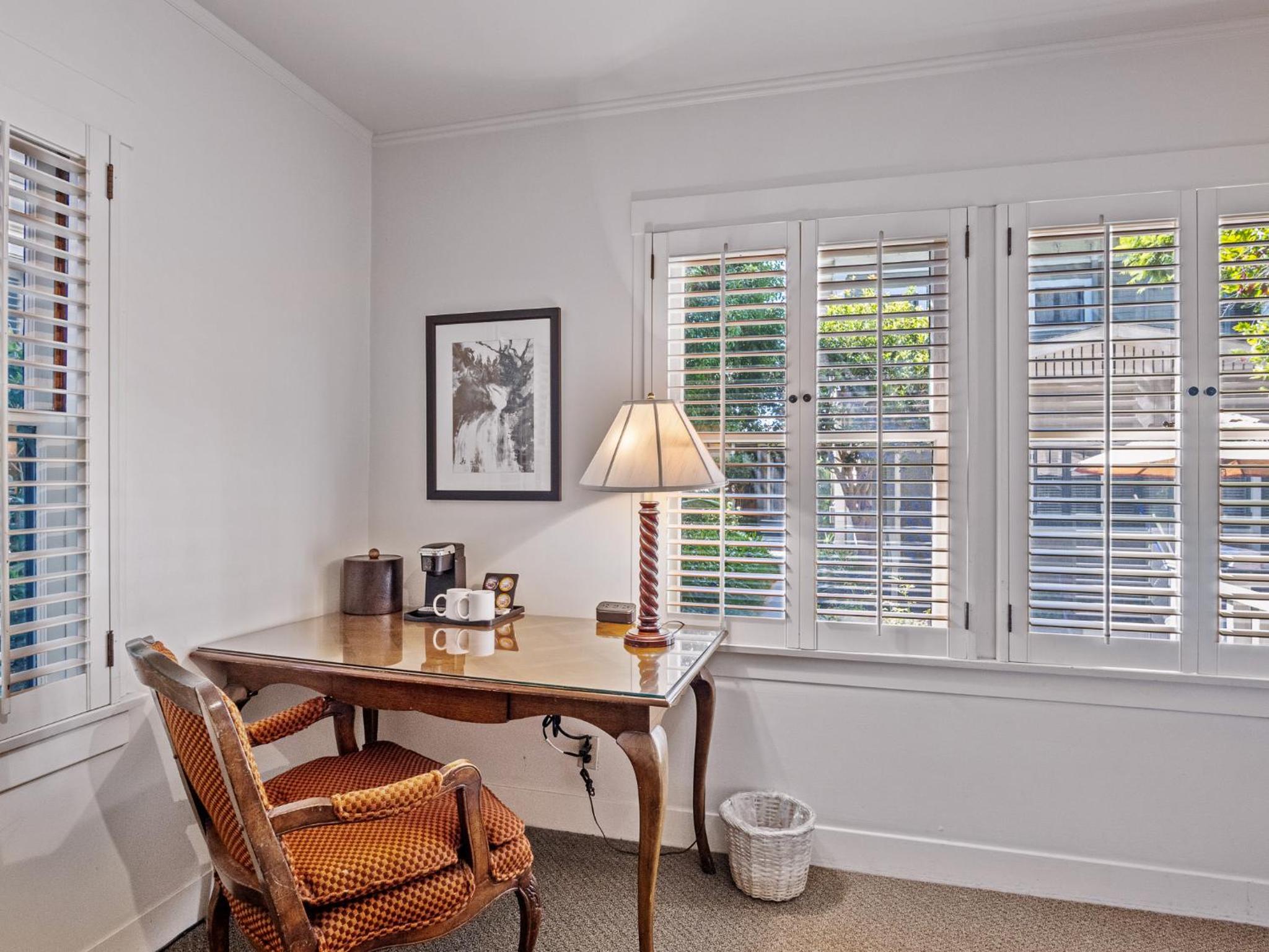 Charming Inn and accommodations. Stayed in one of the Garden Cottages. Comfortably appointed room with fireplace and private patio. Grounds lovely and inviting. Guest Services helpful and welcoming. On site parking provided. And downtown Santa Barbara with great restaurants, art museum, parks, shopping, all within walking distance.