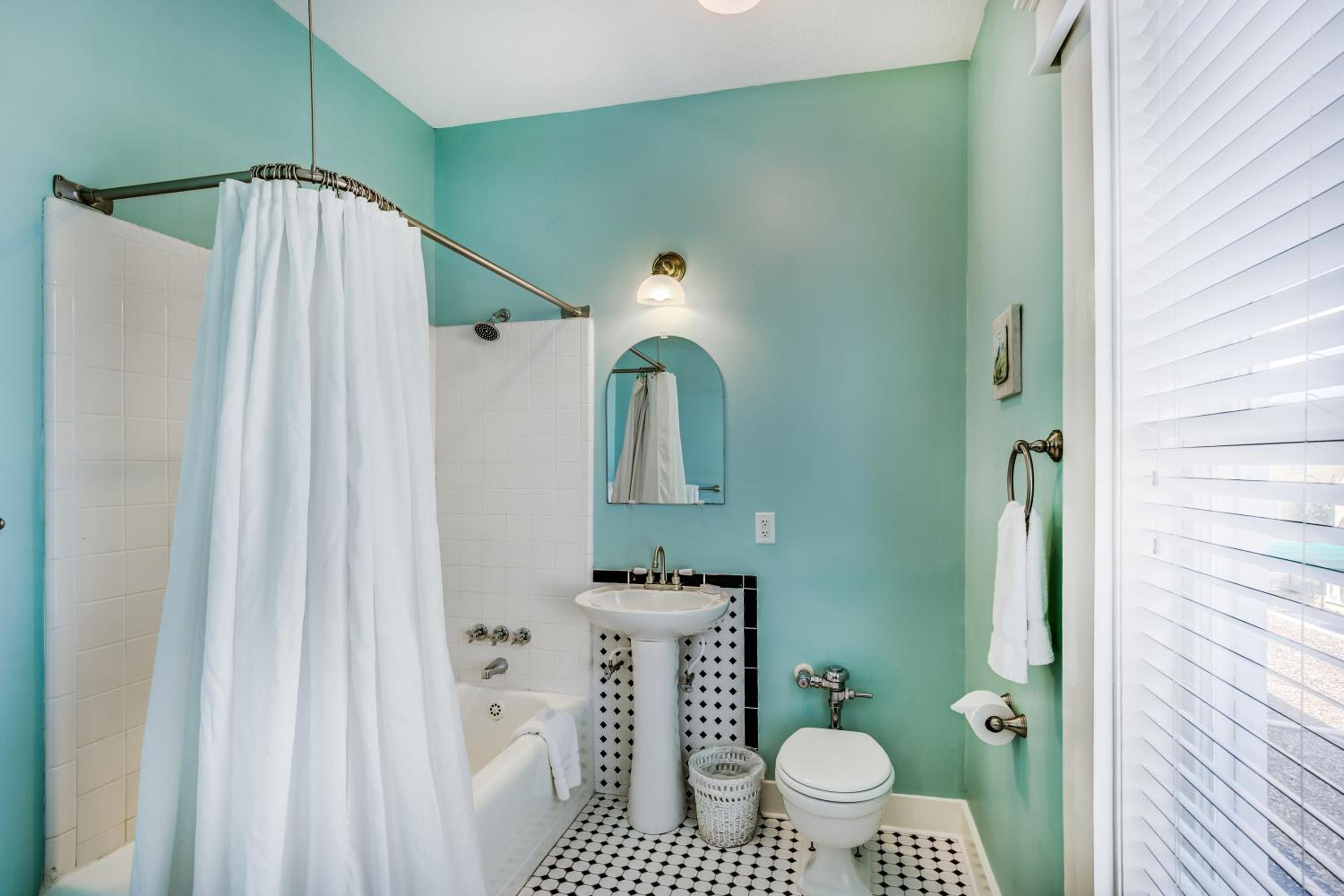 Bathroom is small and dated, pedestal sink only, harder to get ready, a bit pricey for the room you get