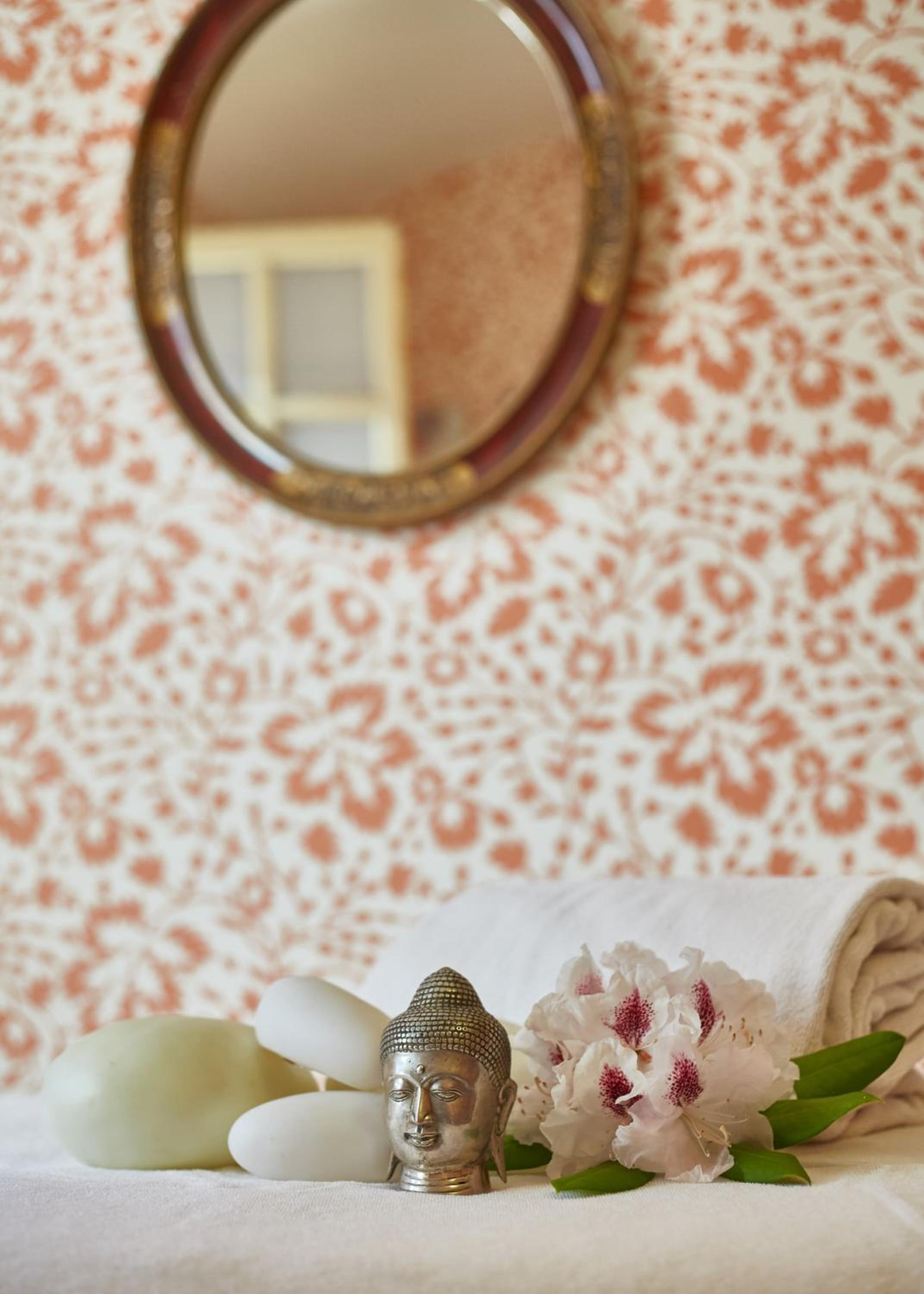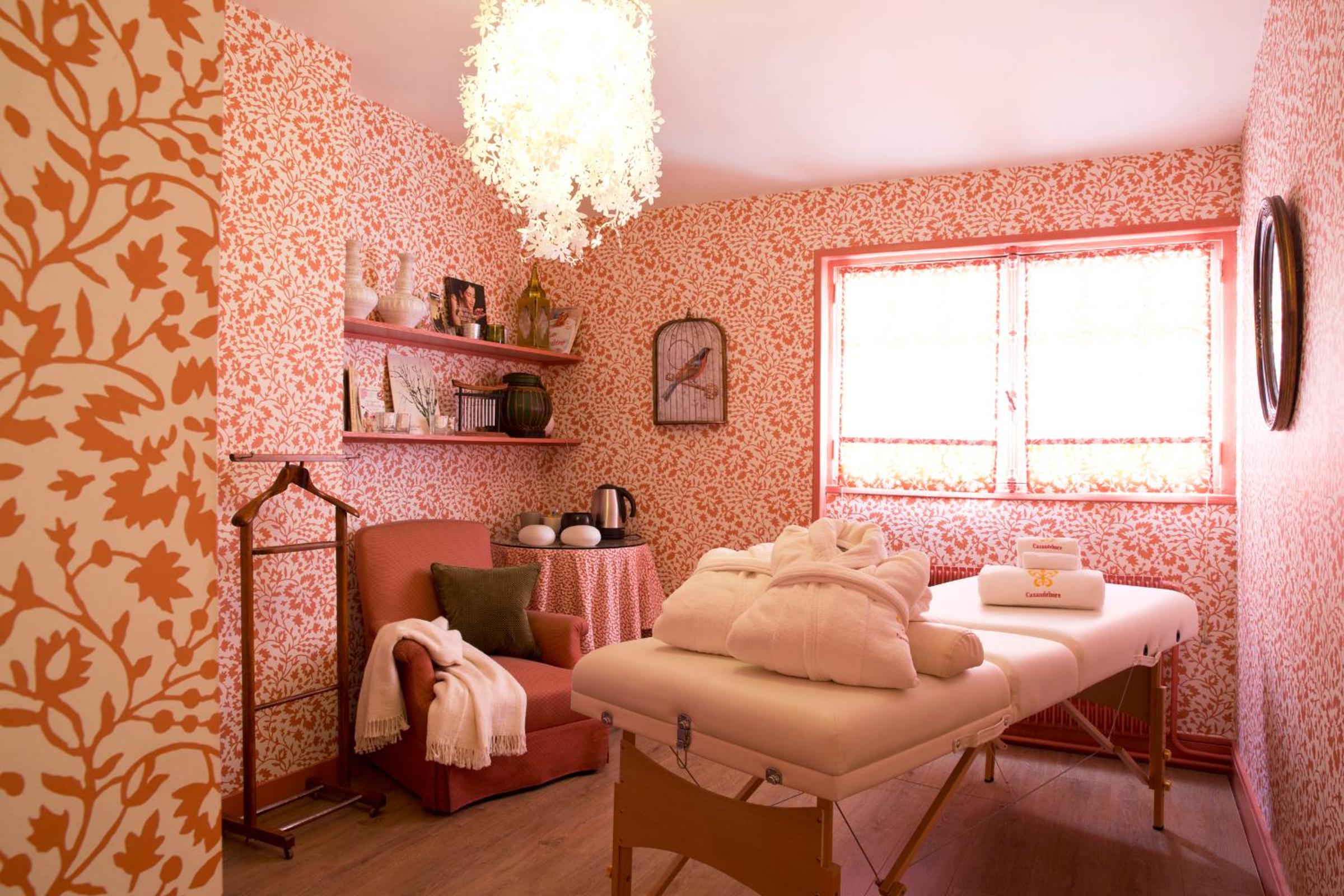 La beauté et le calme du lieux, les bons thés qu'on peut boire devant la cheminée. Les deux coupes de champagne offertes.