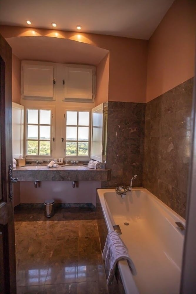 The hotel was a wonderful ancient building, superbly positioned on top of a hill. Our room was very good and the beautiful gardens and swimming pool much appreciated. All the staff were very friendly. We would stay again. The restaurant was quiet and we felt a bit "overserviced" with staff coming to our table more than was required. We felt the restaurant was not the same value-for-money as the hotel stay as the wines by the glass seemed overpriced.