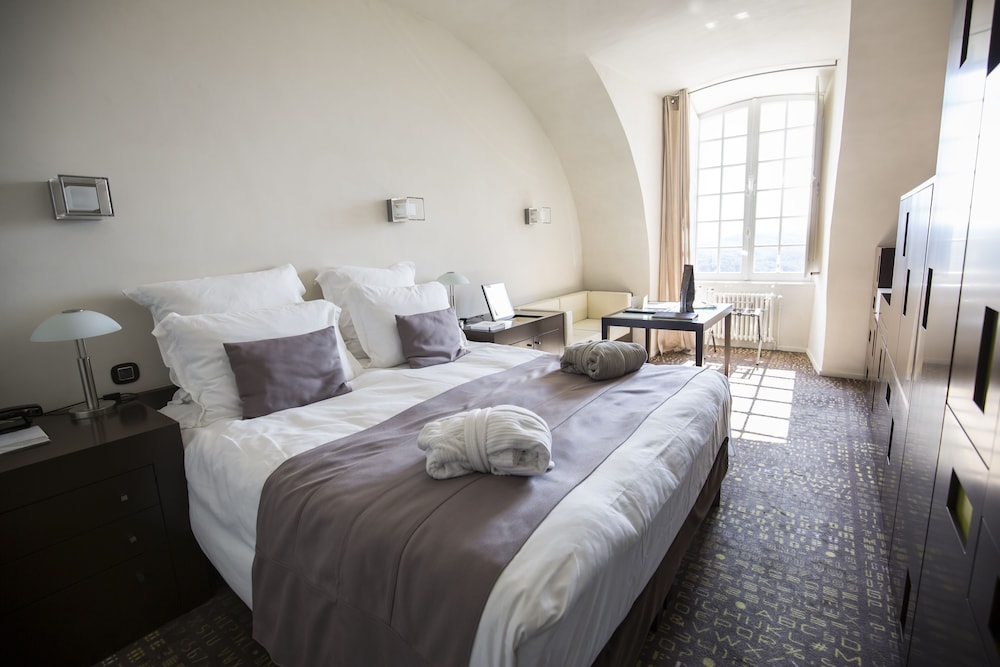Lovely medieval building, set on a hill above an industrial area. No real opportunity to stroll into a charming adjacent village. . The rooms vary widely in quality of decor, amenities, or charm. The hotel staff is friendly but understaffed. The Michelin starred chef left a year ago. Current staff is overwhelmed and food options are very limited with no choices and very basic execution. Breakfast is adequate, but with grocery store croissants and powdered scrambled eggs it is sonewhat of a challenge to satisfy.one’s appetite. This is not at all an experience one expects at a Relais et Chateau property.
