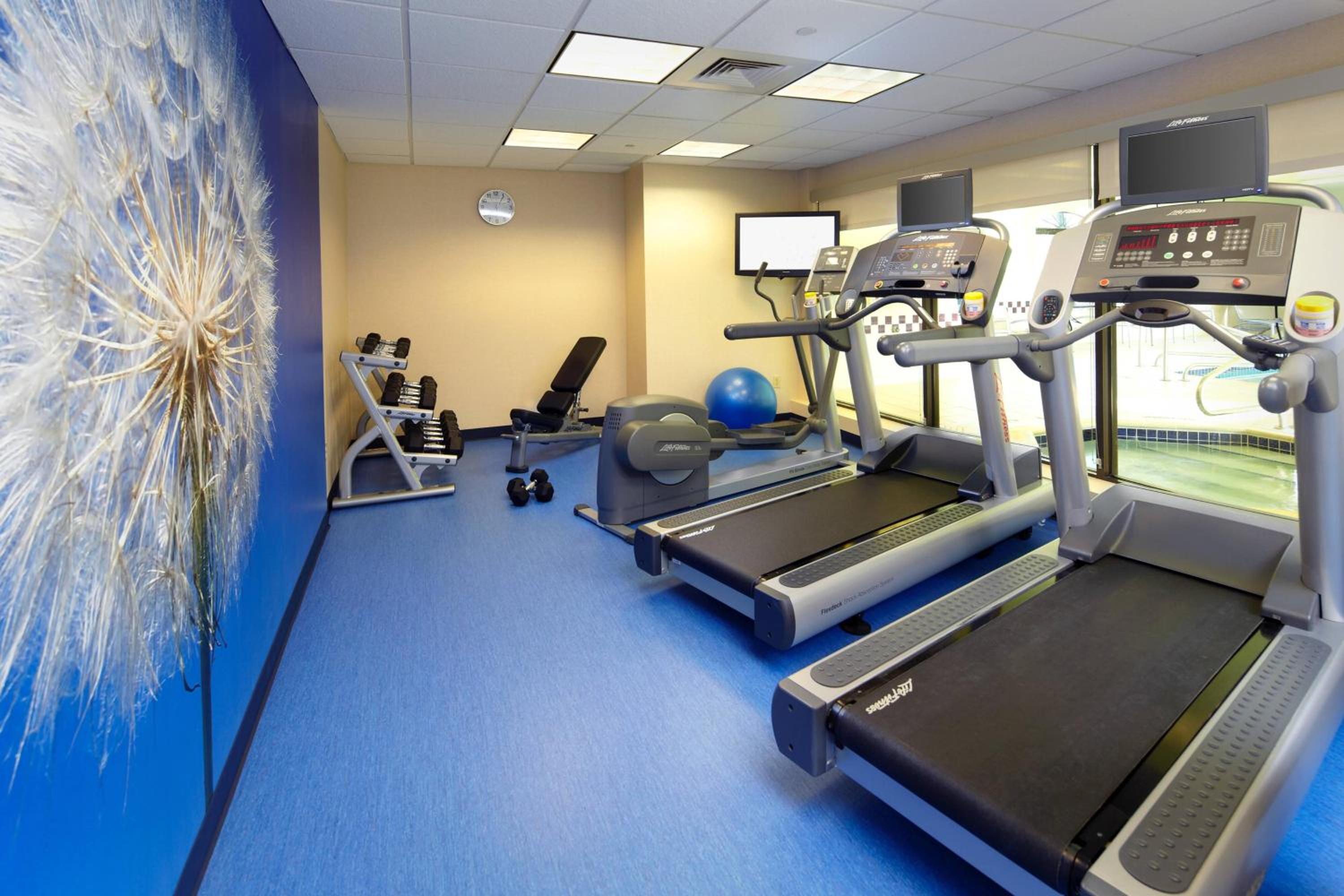 This SpringHill Suites offers an array of luxurious amenities, including an indoor pool, whirlpool, and a modern fitness center.