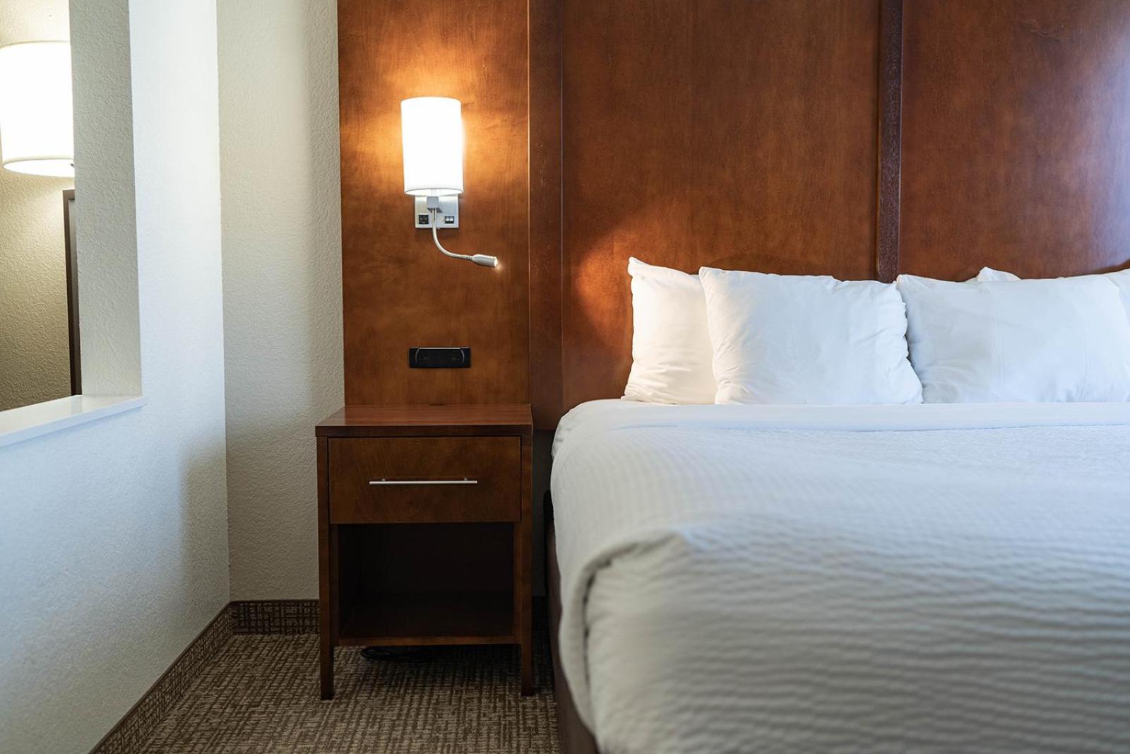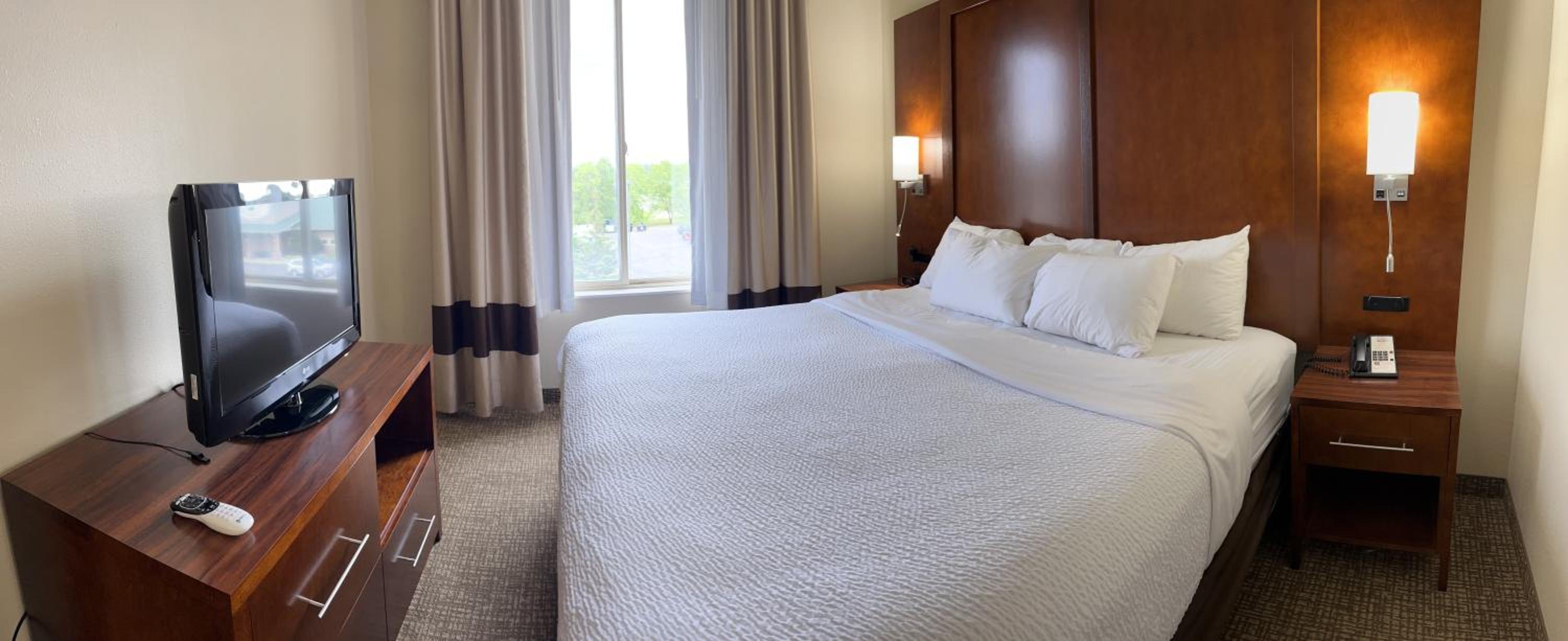 Each room is equipped with modern conveniences such as refrigerators, microwaves, and coffee makers. The recharge device with AC and USB outlets ensures your devices stay powered up, while select suites offer fireplaces and whirlpools for added luxury.