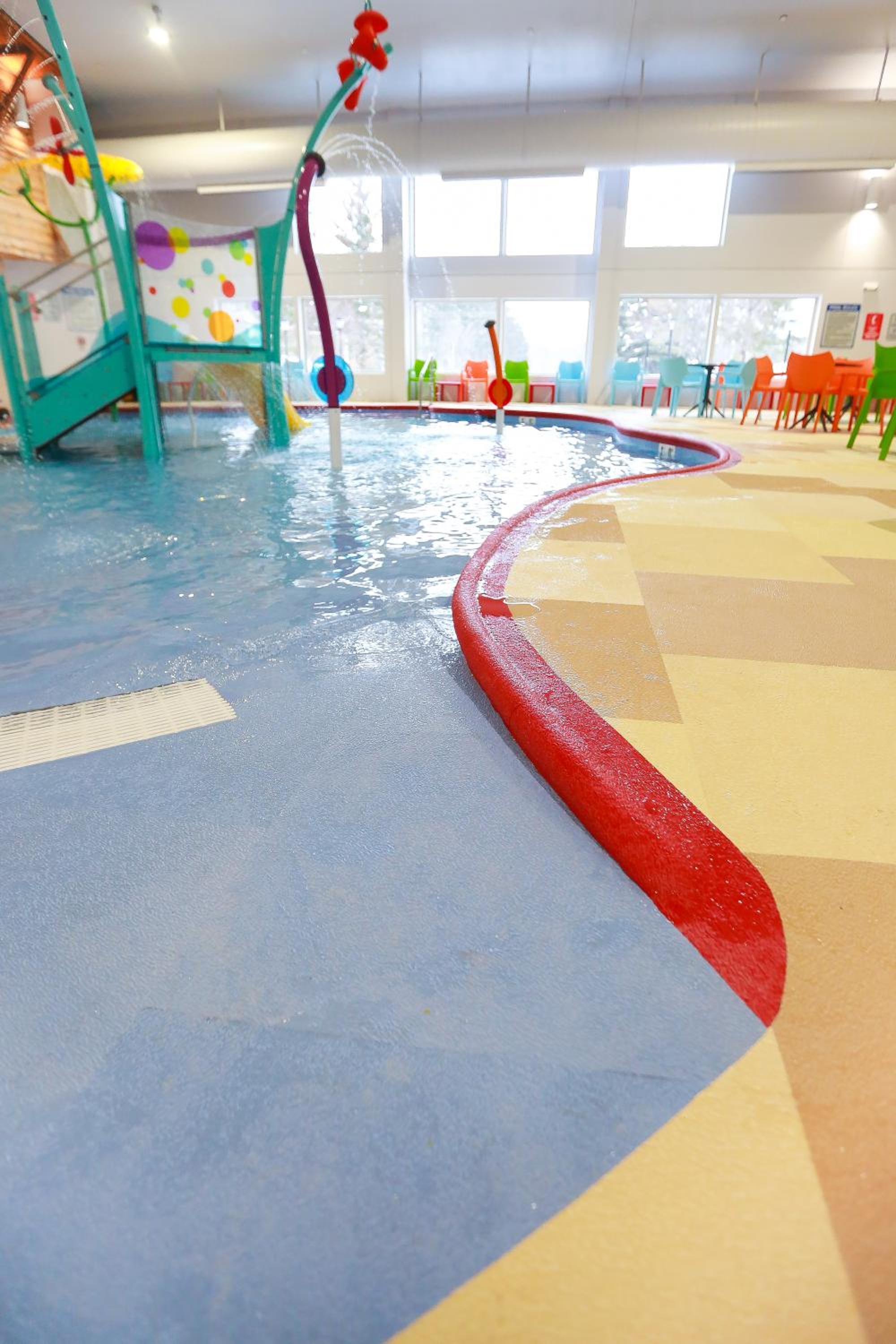 The waterpark was perfect for our kids who ranged from 9 months-10 years old. It wasn't too large and we were able to watch the young kids in the splash pad area and the older kids going down the slides and the lazy river. The kids especially loved the hot tub and thought it was so cool they could go outside.