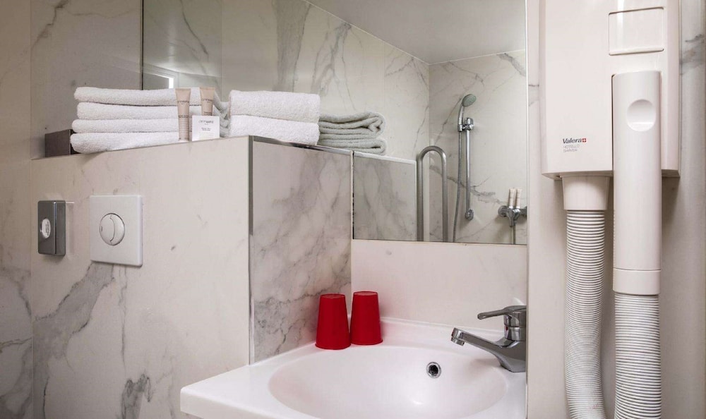 Nice hotel with a good location. Decent size room for Paris and relatively new. Lots of nice boulangeries nearby. Close to parmentier and oberkampf metro stops. Many options to nearby. Look forward to staying at in the future.