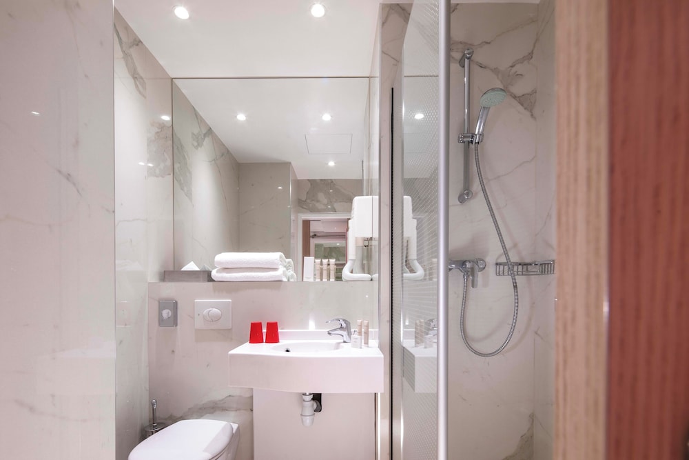 Very helpful staff on 24/7. Good breakfast buffet and left luggage facility. Modern, stylish room.