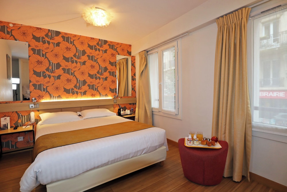 A small lovely hotel in a quiet neighborhood. Many restaurants, short walk to 3 subway lines. Helpful & friendly staff. Very clean small room. Might not be for 1st time Paris travelers that want to be close to touristy areas. Loved the area. The breakfast buffet was very reasonable & had nice selection. Less expensive then heading out for something.