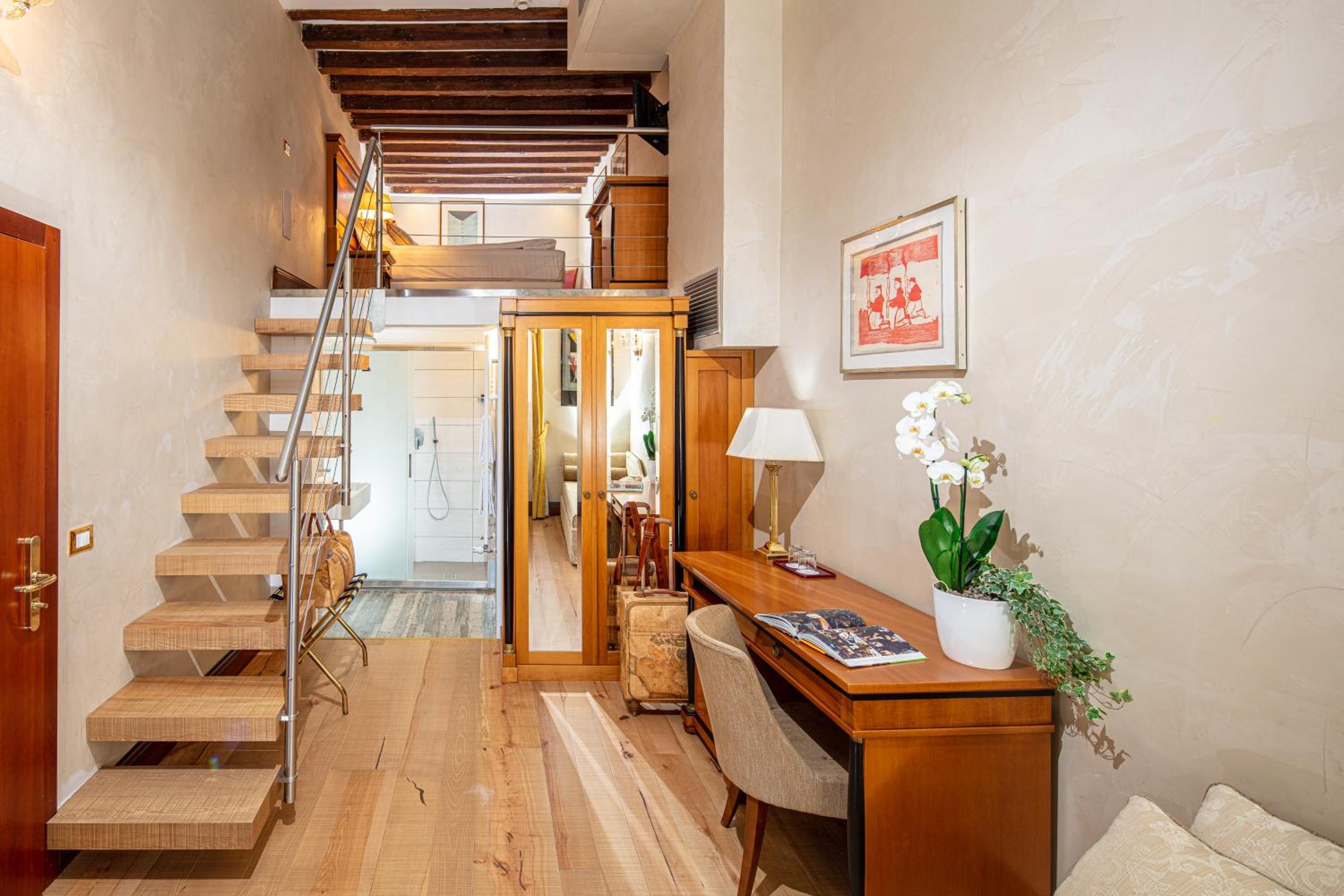 Located in a 17th-century building on the canal of Palazzo Ducale, All’Angelo Art Hotel seamlessly blends historic charm with modern comforts. Just a short stroll from St. Mark’s Square, this hotel offers a prime location in the heart of Venice.