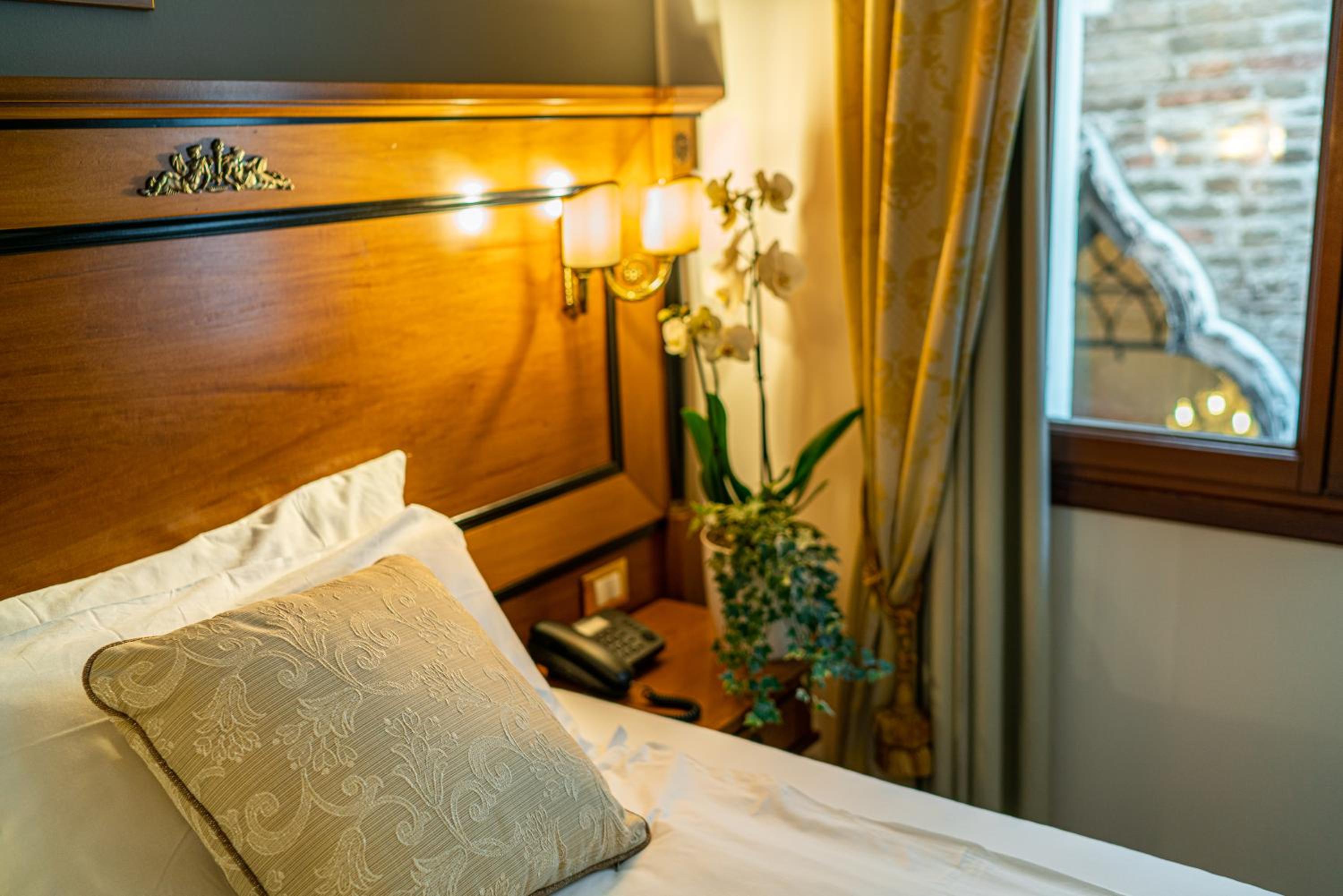 Das Hotel ist hinterm Markusplatz, super Lage, man hat umliegend gute Restaurants. Im Hotel kann man auch noch einen Schlummertrink zu sich nehmen, die Kellnerin ist ein richtiges italienisches Unikat ☺