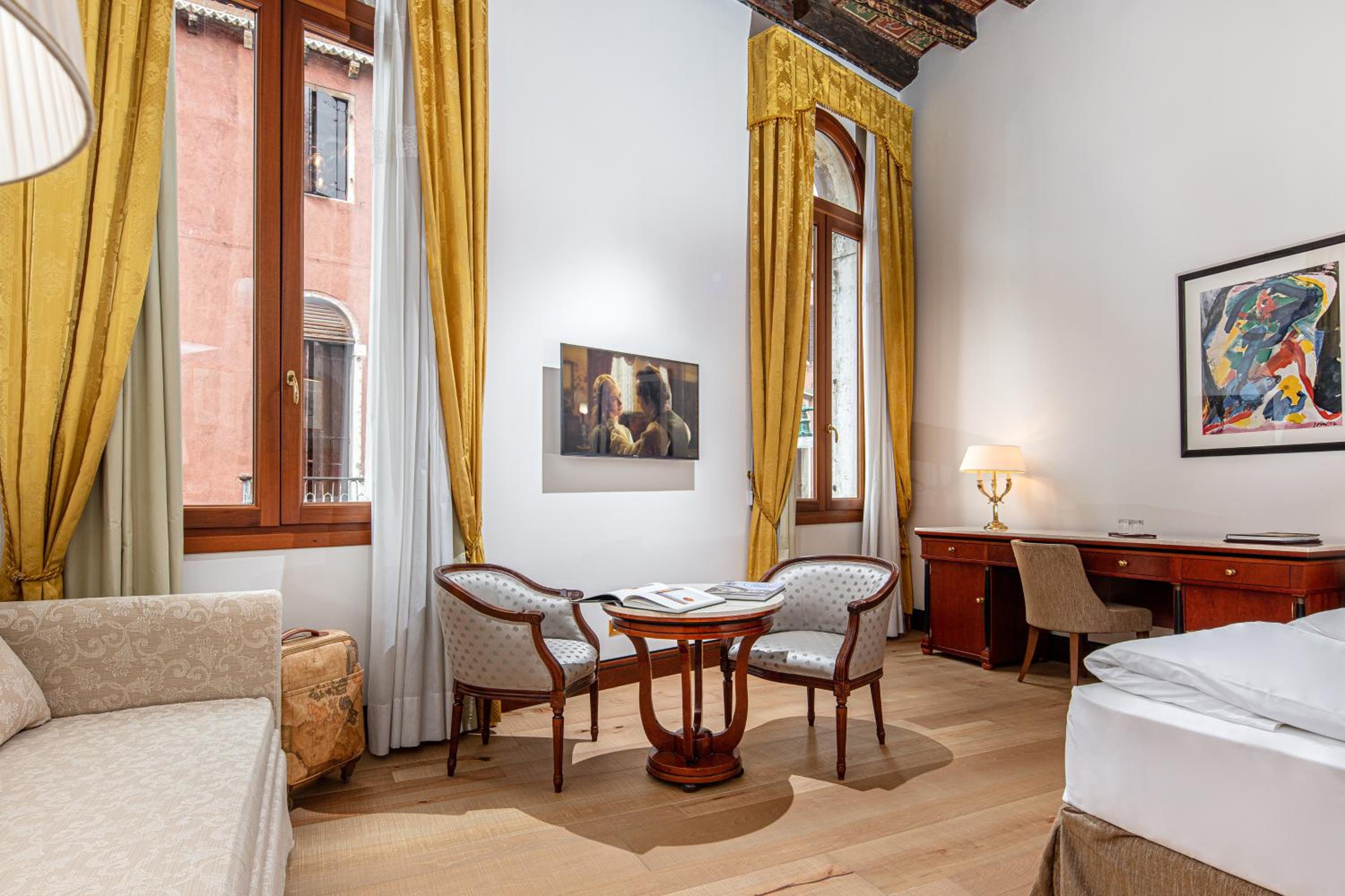 Step into the elegantly furnished rooms adorned with paintings by renowned artists such as Matisse and Braque. The hotel's public areas showcase works by Vedova and San Tommaso, adding an artistic touch to your stay.